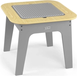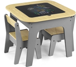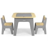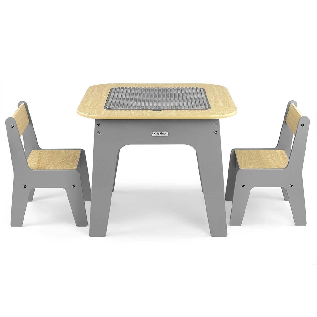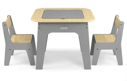 Le set pratique de mobilier pour enfants MILLY MALLY Olaf Blocks comprend une table et deux chaises, alliant élégamment bois et gris. Le plateau de la table est réversible – une face est une surface de construction pour briques, l’autre une ardoise lisse pour dessiner à la craie. Sous le plateau, vous trouverez un grand bac de rangement pour jouets et accessoires. Des bords arrondis, une structure stable en MDF et un entretien facile garantissent une utilisation sûre et confortable pour les enfants.