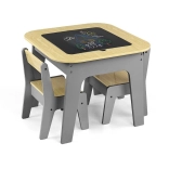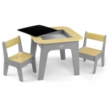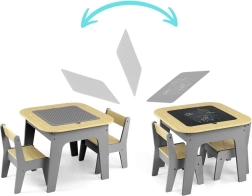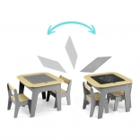 Découvrez un set multifonction qui offre aux enfants un espace créatif pour jouer, dessiner et apprendre. Le plateau réversible de la table se retire aisément : d’un côté, une surface structurée pour construire avec des briques ; de l’autre, une ardoise pour la craie. Sous le plateau se trouve un espace de rangement astucieux qui aide à garder la chambre en ordre.