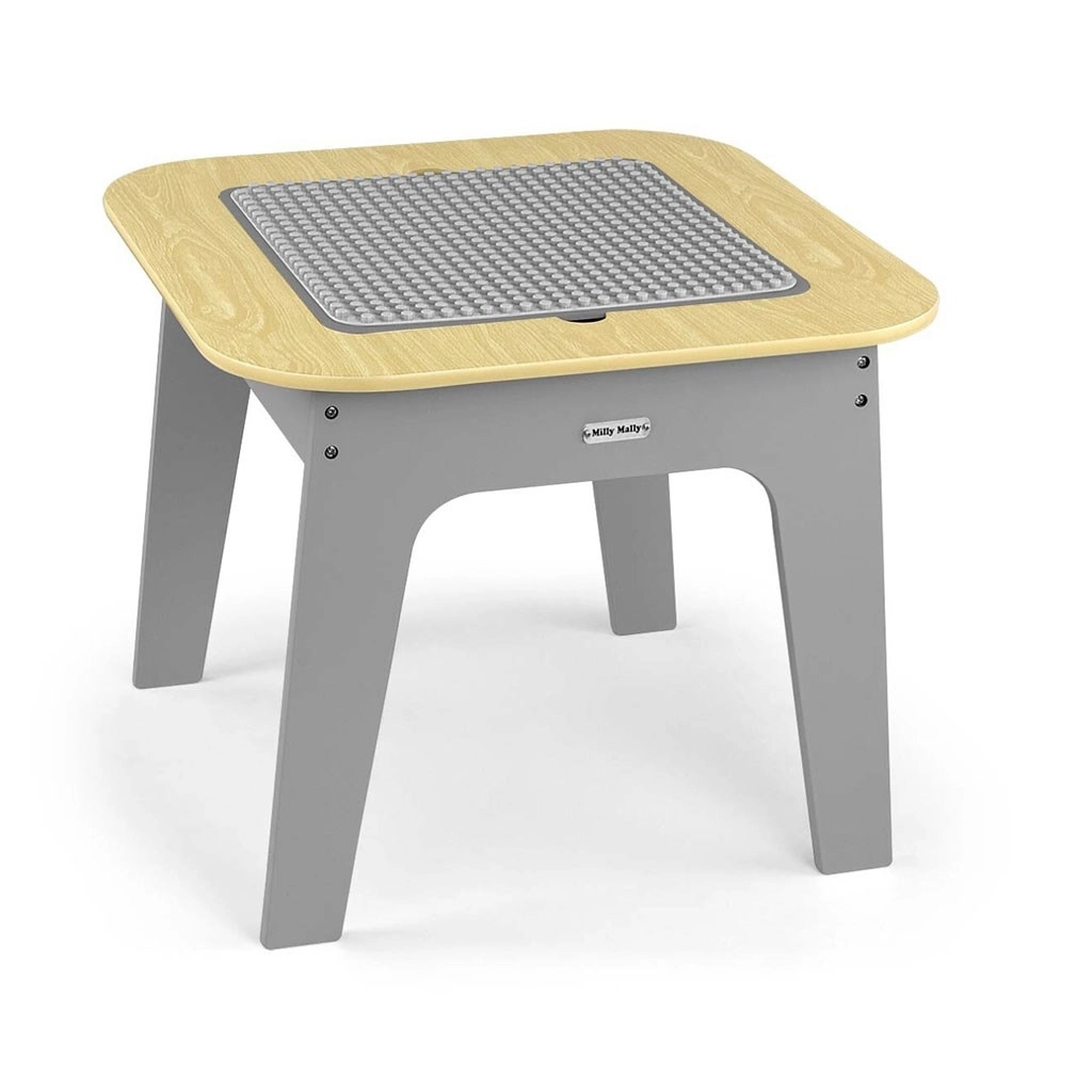 - Espace de rangement intégré sous le plateau pour briques, jouets et fournitures créatives.
