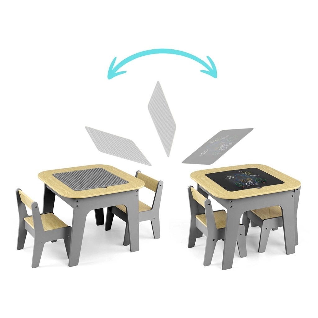 - Table multifonction 2-en-1 – surface pour briques et ardoise pour craie.