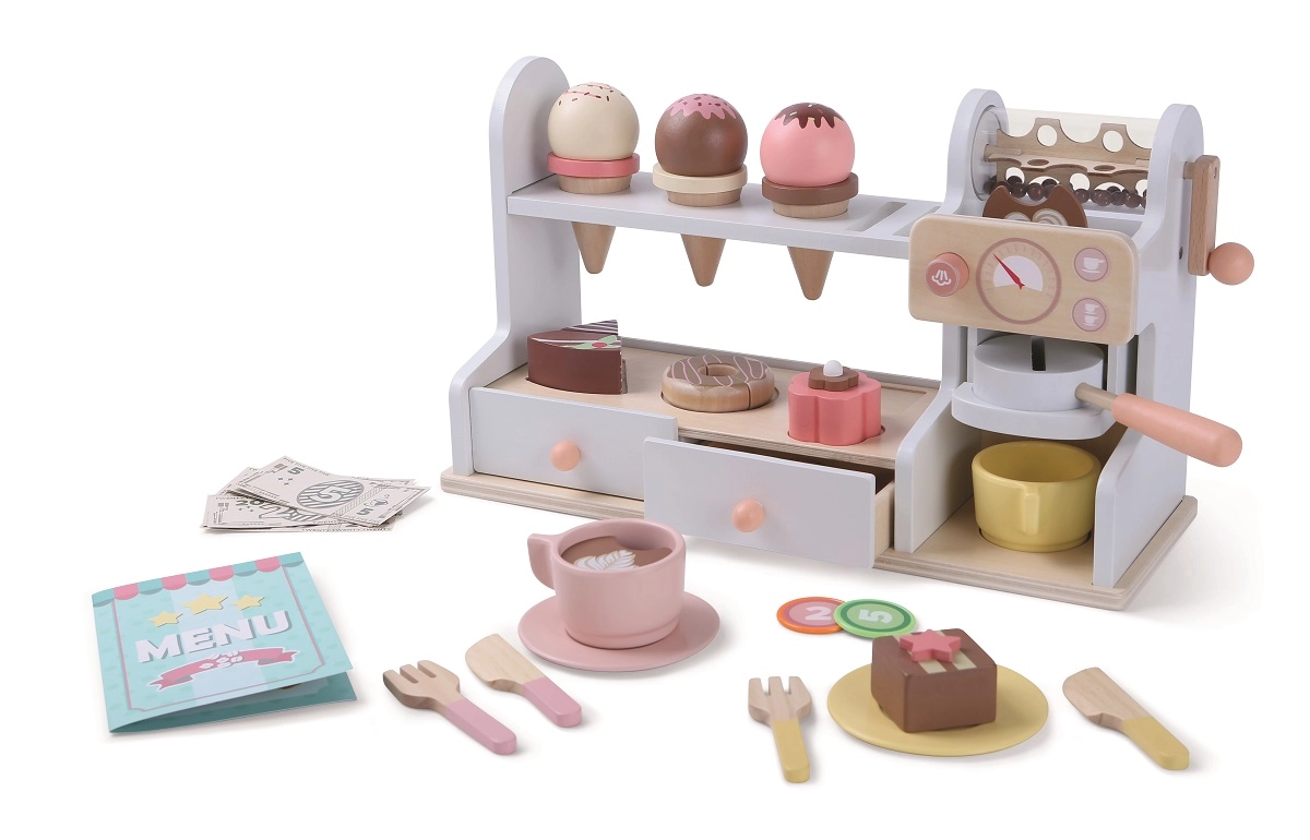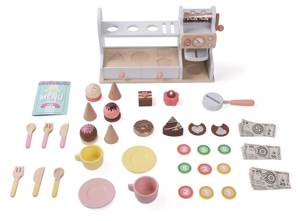 - Ensemble de jeu de rôle en bois — pâtisserie et café 2 en 1
