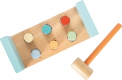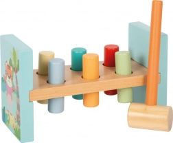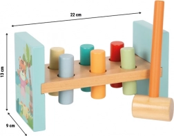 Découvrez le plaisir du jeu avec ce banc à marteler en bois sur le thème de la jungle, fabriqué en bois 100 % certifié FSC. À l’aide d’un petit marteau, les enfants enfoncent des chevilles colorées à travers des ouvertures caoutchoutées, développant naturellement la motricité fine, la coordination œil–main et une prise précise. Sa conception robuste, ses illustrations ludiques d’animaux et la possibilité de rejouer encore et encore en font un choix idéal pour les petits explorateurs.