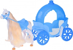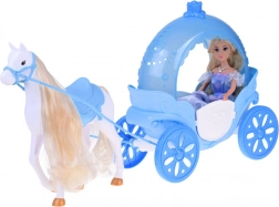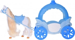 - Poupée princesse, diadème, collier, chaussures ; cheval blanc avec selle et filet ; carrosse