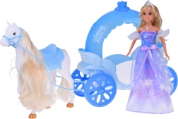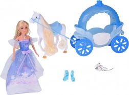 - Contenu de la boîte : poupée princesse en robe de bal avec chaussures, diadème et collier, cheval blanc avec selle et filet, carrosse