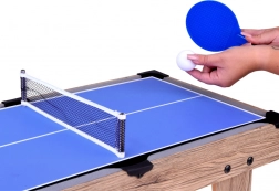 Il suffit de quelques secondes pour changer de surface de jeu : de la précision du billard, aux échanges dynamiques du ping‑pong, au palet fusant de l’air hockey jusqu’aux buts palpitants du baby-foot. La boîte contient tout le nécessaire – des boules, queues et triangle aux raquettes et balles, ainsi que les compteurs de score et les palets.