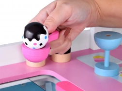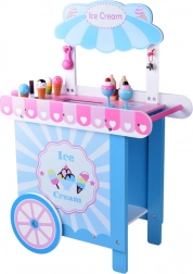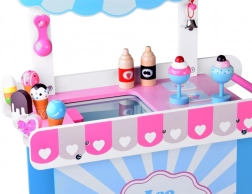 Ce chariot de glaces pour enfants, au style soigné et dans de doux tons rose et bleu, est idéal pour jouer à la boutique et à la pâtisserie. Le comptoir supérieur sert de surface de vente pour présenter boules, cornets et sucettes glacées, et dessous vous trouverez une grande étagère et un « réfrigérateur » coulissant pour ranger les gourmandises et accessoires. Deux crochets pratiques et une clochette argentée complètent l’expérience de service authentique.