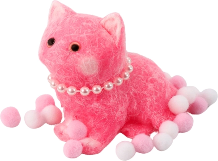 Le design est complété par un décor perlé et des pompons blanc‑roses, qui donnent au jouet un caractère à la fois élégant et ludique. Parfait pour les enfants comme pour les adultes, pour la maison, le bureau ou comme petit cadeau original pour les amoureux des chats.
