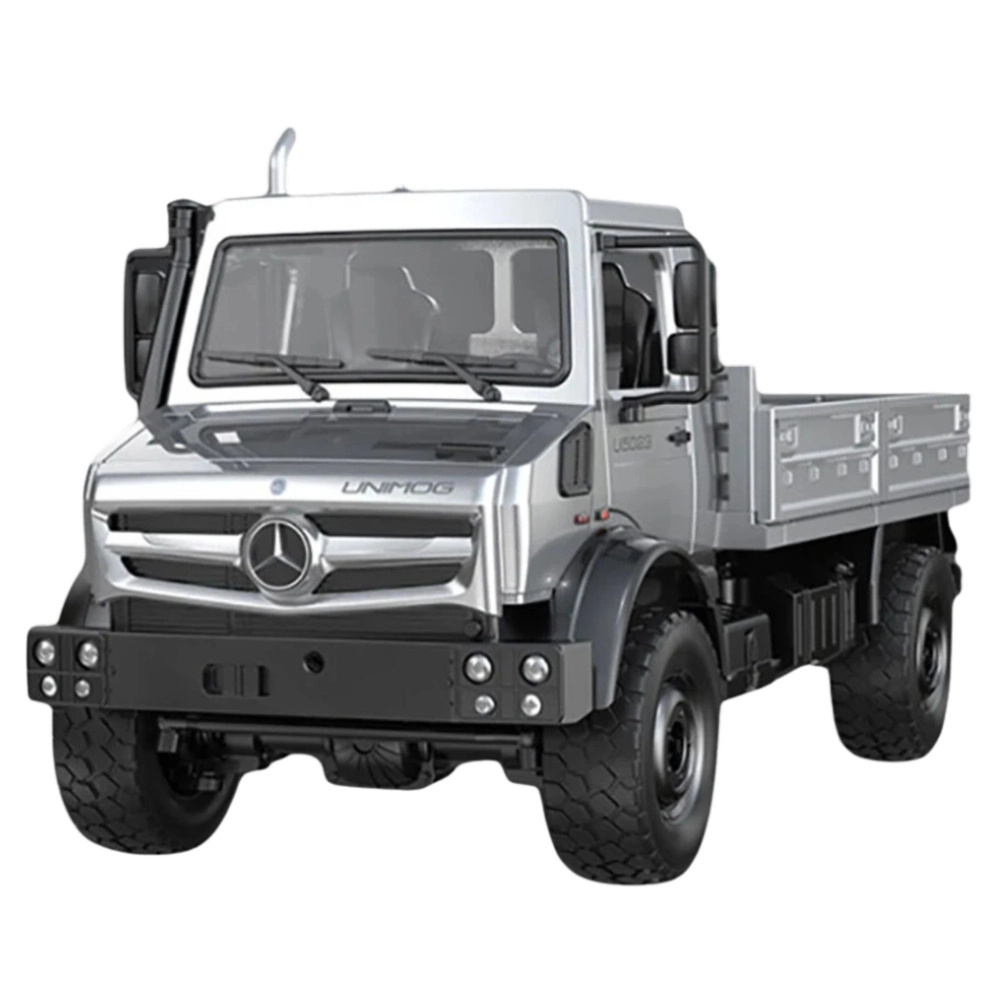 La voiture tout-terrain RC MERSEDES-BENZ UNIMOG 4x4 est un modèle détaillé avec éléments métalliques, portes et capot ouvrants. L’accélérateur et la direction proportionnels permettent des démarrages en douceur, des freinages progressifs et des virages précis. L’émetteur stable 2,4 GHz offre un contrôle fiable sans interférences avec une portée jusqu’à 25 m.