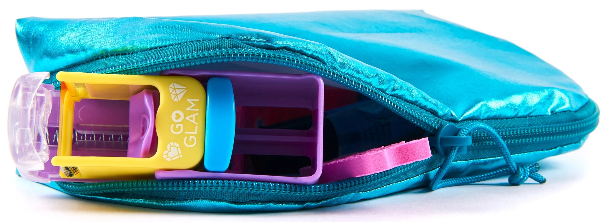 La trousse pailletée zippée garde vernis, cartouches et tampon bien rangés. Idéale pour transporter et stocker l’ensemble en toute sécurité.