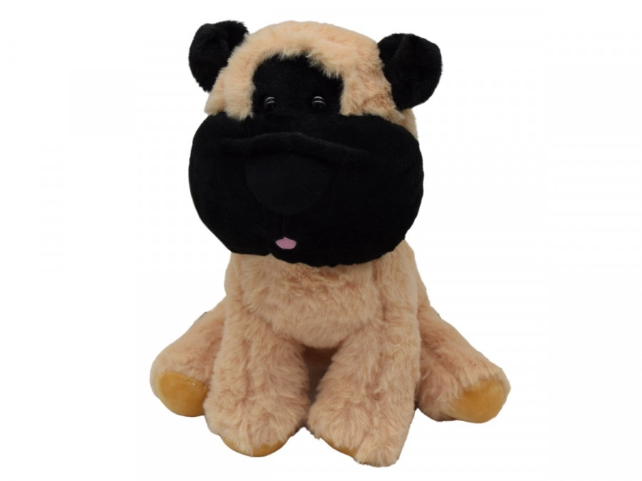 La peluche souple et la texture douce assurent un toucher agréable et du confort pendant le jeu comme au repos. Le chien garde sa forme et reste sûr grâce aux détails brodés.