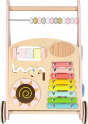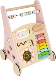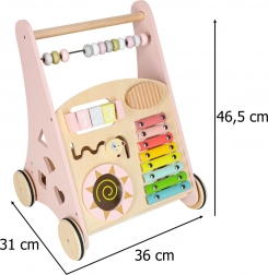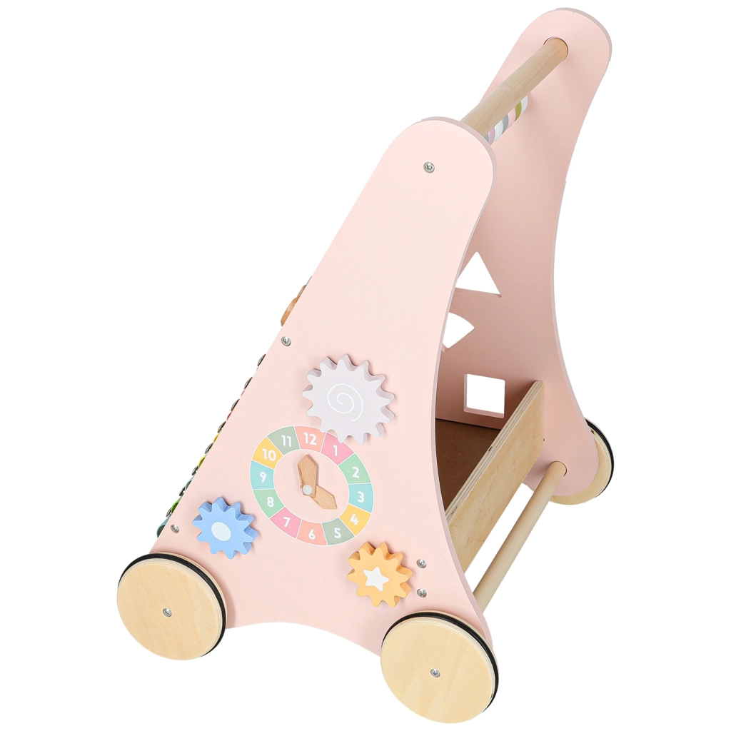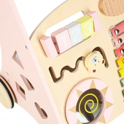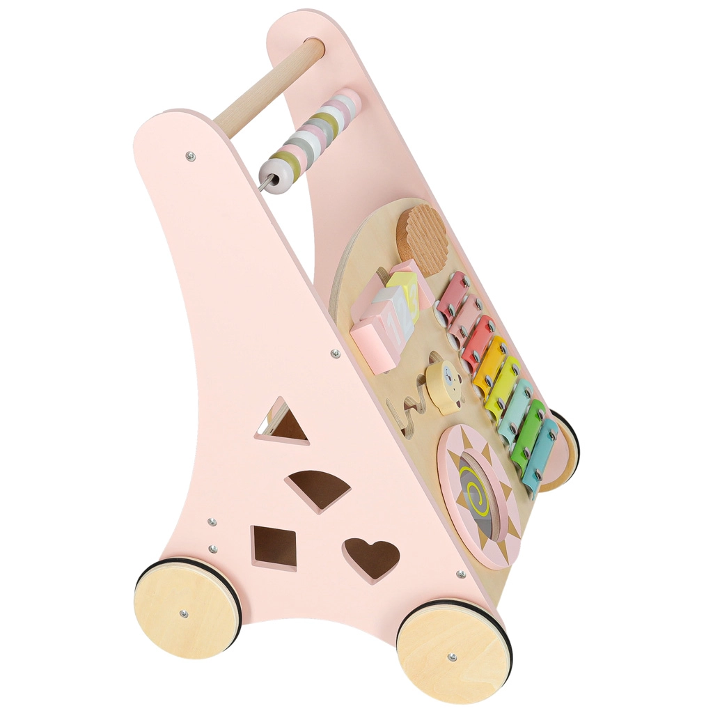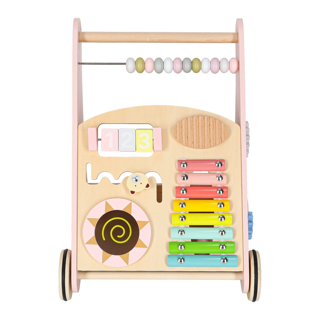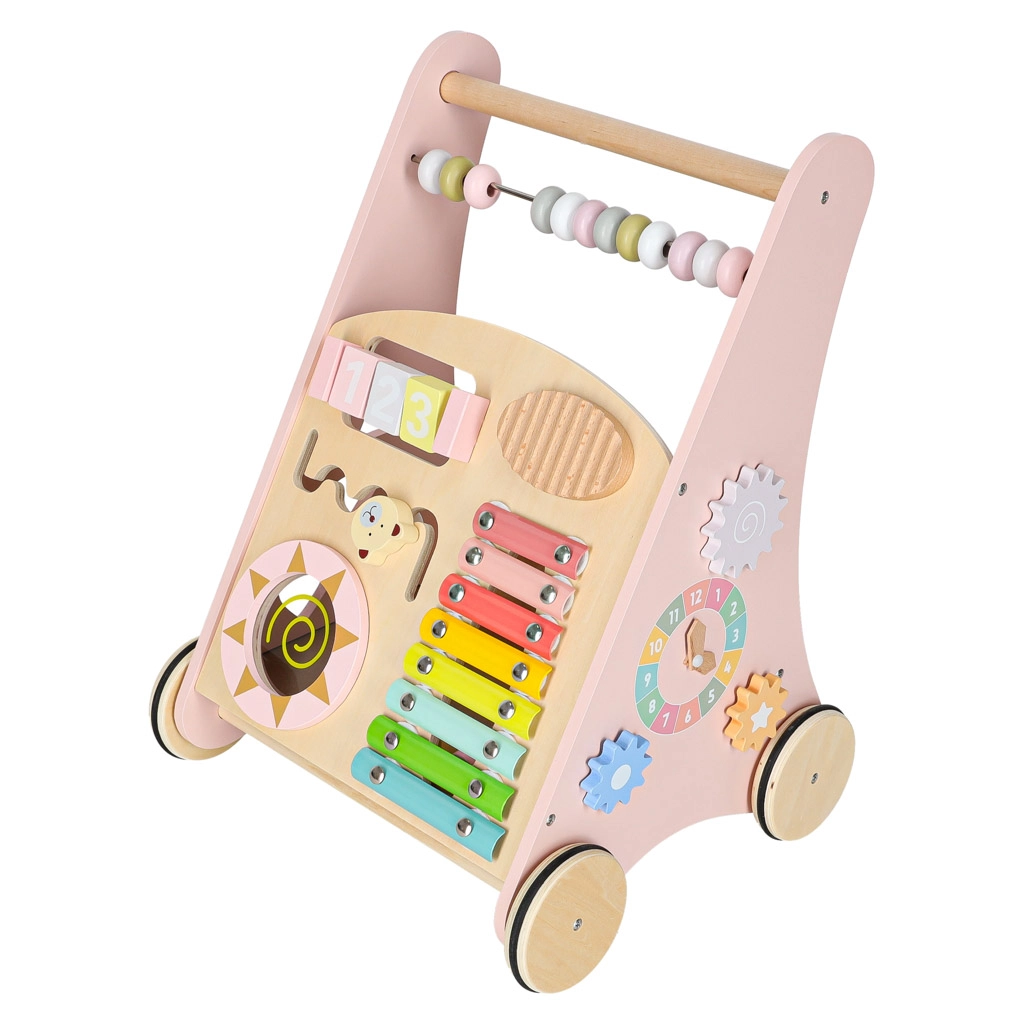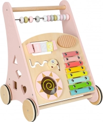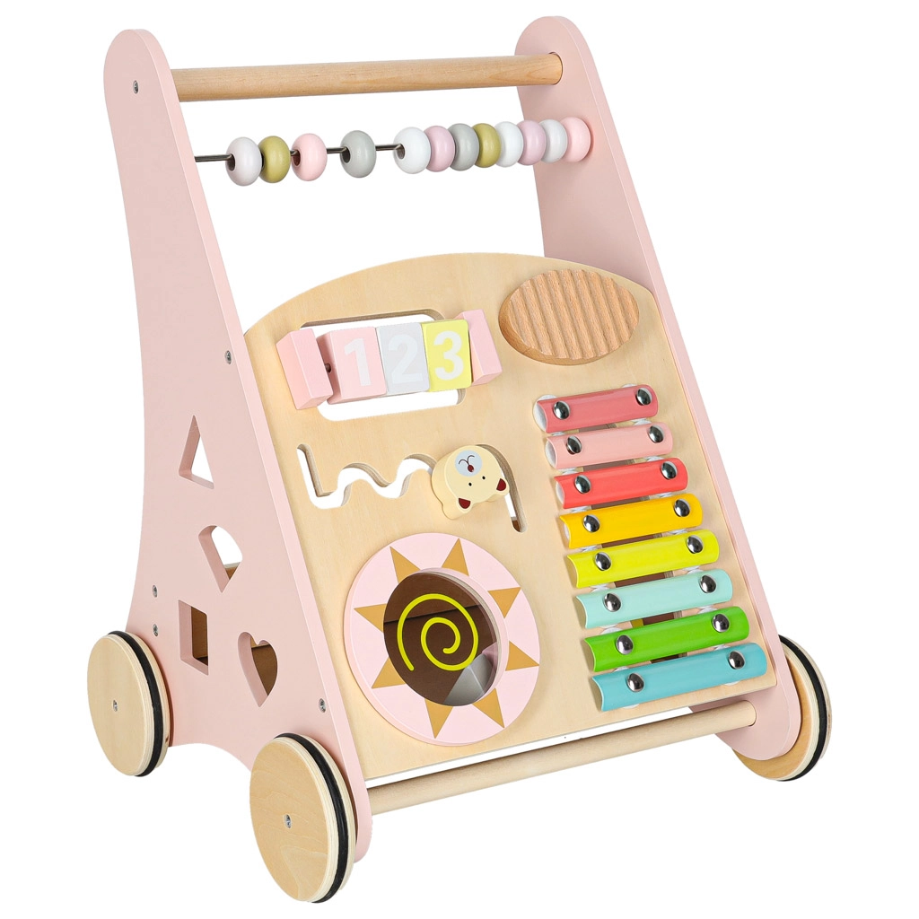 Chariot de marche en bois poussoir avec boulier et activités, rose