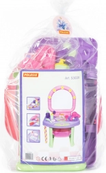 - Coiffeuse avec miroir et accessoires thématiques (p. ex. sèche-cheveux, peigne, brosse, flacons « cosmétiques »)
