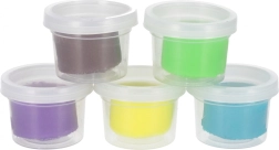 La pâte est conservée dans des pots pratiques avec couvercles pour rester souple plus longtemps. Le kit est idéal pour les activités à la maison ou comme cadeau qui encourage les jeux créatifs et développe en douceur la coordination œil–main et la patience.