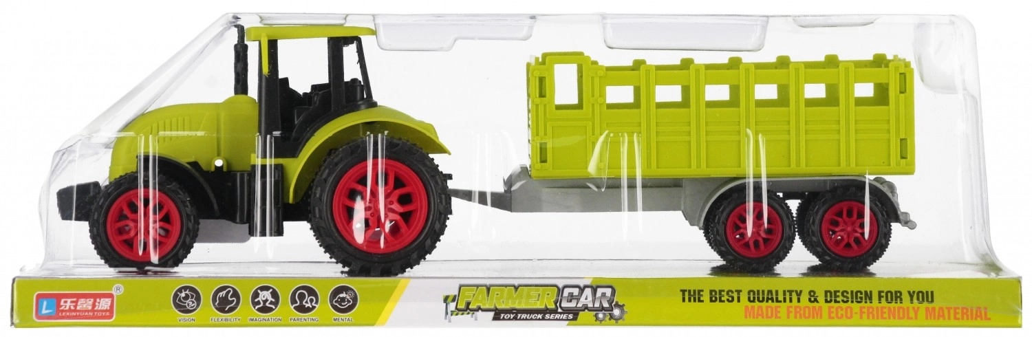 Amusant tracteur avec remorque pour petits fermiers, offrant un look réaliste, des roues mobiles et la possibilité de transporter des charges. Parfait pour jouer à la maison comme en extérieur, il stimule la créativité et le développement de la motricité. Convient aux enfants à partir de 3 ans. Prix pour 1 pièce.