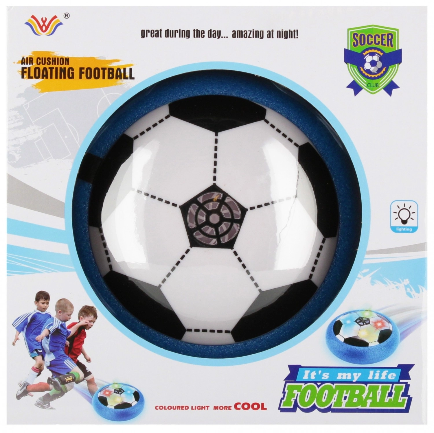 Amusant jeu de football flottant pour enfants, permettant de jouer en intérieur en toute sécurité sans risque d’endommager les meubles. Le ballon glisse légèrement au-dessus du sol comme un petit palet d’air hockey et offre de colorés effets lumineux qui égayent chaque partie. Idéal pour les enfants à partir de 3 ans.