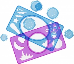 Une disposition améliorée des gabarits et davantage de roues permettent des motifs géométriques et décoratifs encore plus variés pour enfants et adultes.