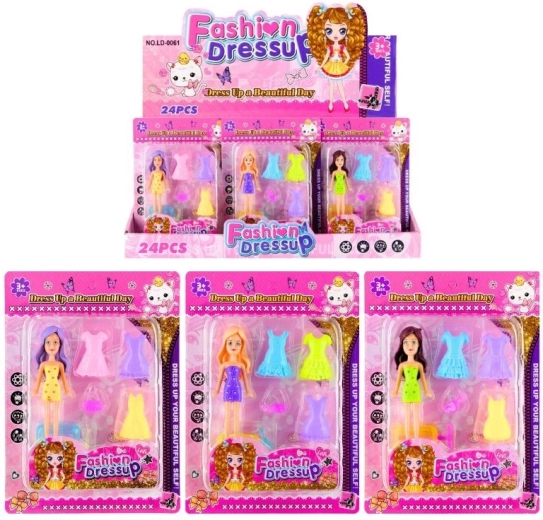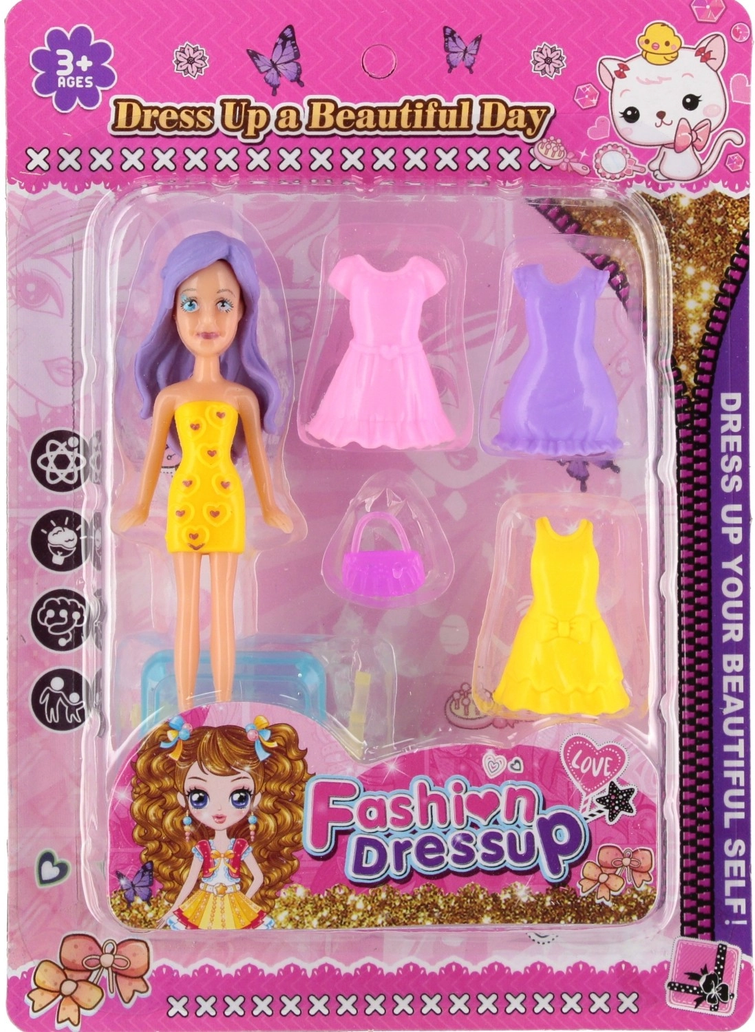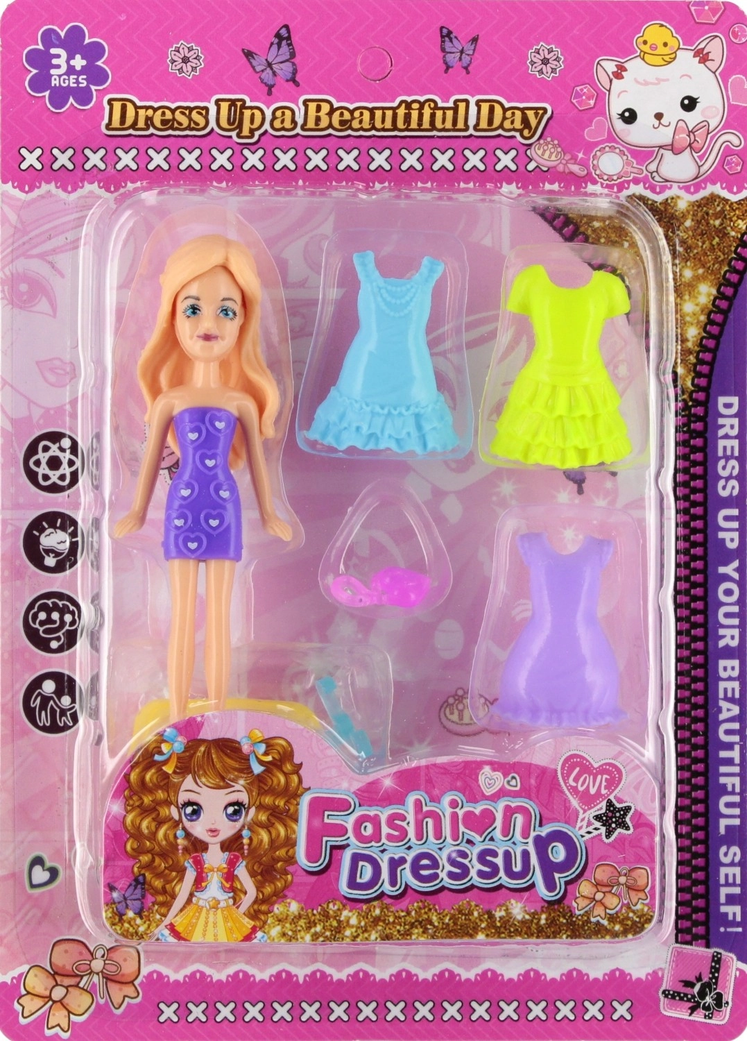 Une adorable poupée à habiller avec accessoires offrira aux enfants beaucoup de plaisir et de créativité. Elle comprend trois robes différentes et un sac à main, afin que les enfants puissent créer leurs propres combinaisons de mode. Un excellent jouet pour les petites stylistes qui aiment l’univers de la mode et des poupées. Assortiment de couleurs. Convient aux enfants dès 3 ans. Prix à l’unité.
