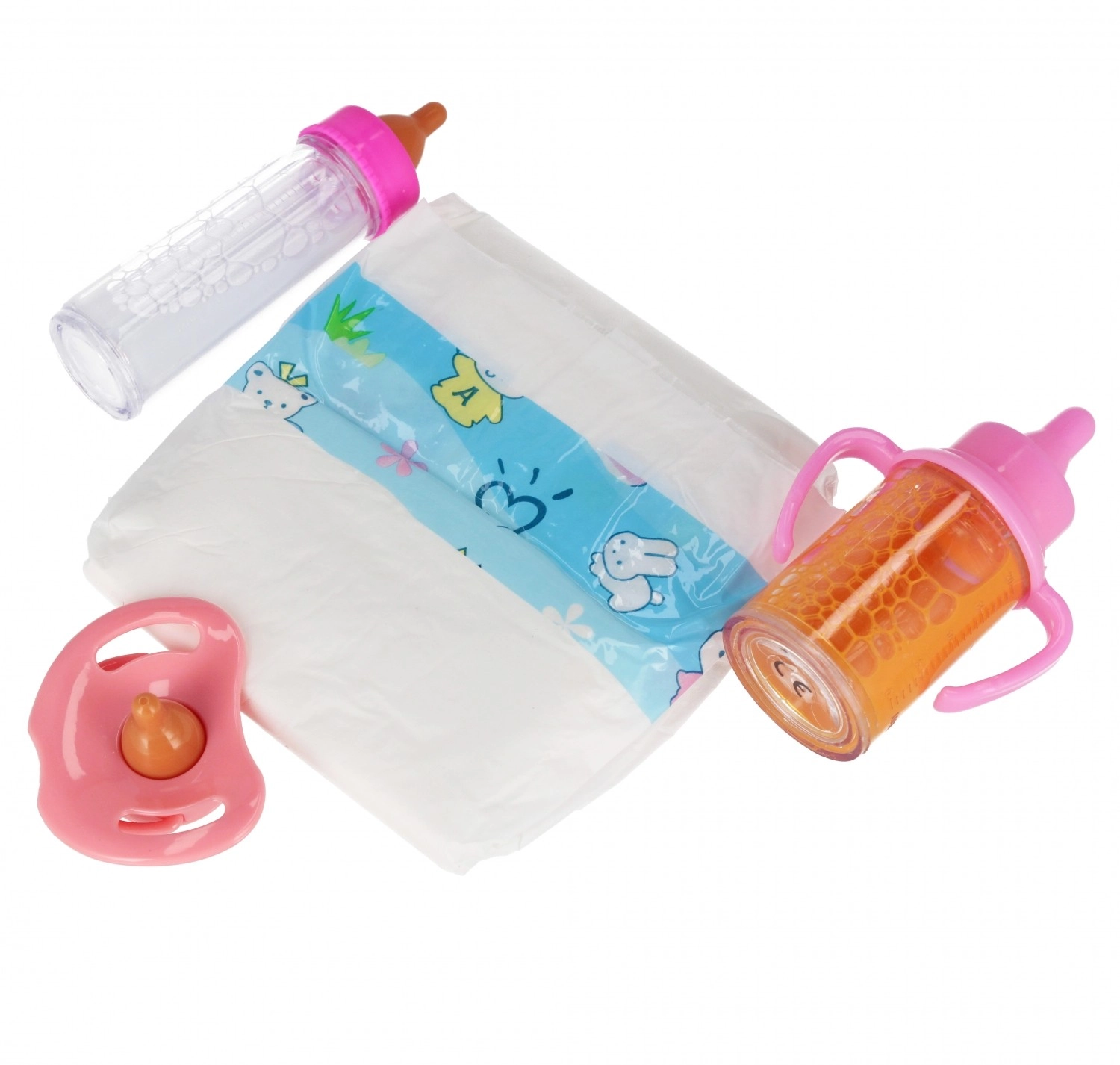 Un ensemble d’accessoires pour poupée bébé qui apporte tout le nécessaire pour les soins quotidiens — biberons, couche et tétine. Favorise l’empathie, les compétences de soin et l’imagination des enfants. Destiné aux enfants à partir de 3 ans. Prix pour 1 pièce.
