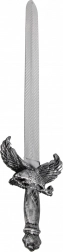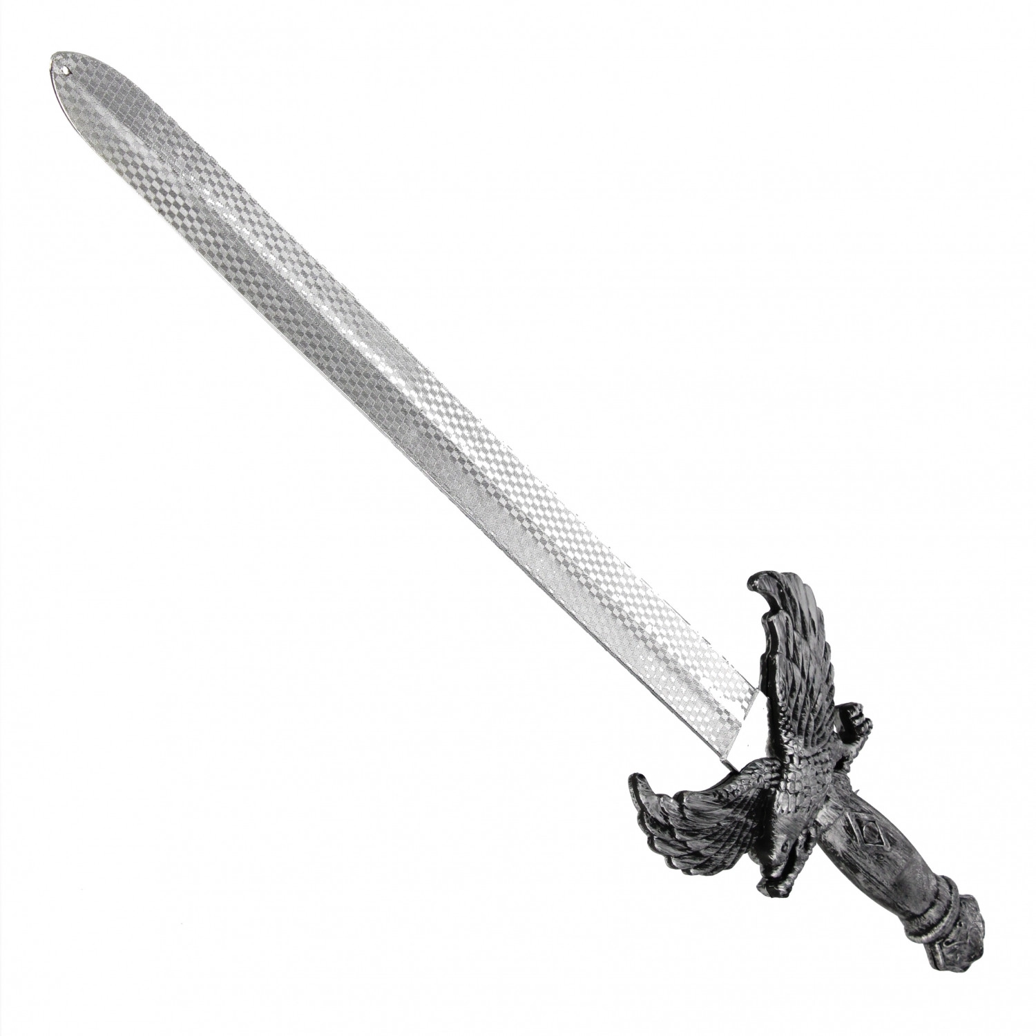 Lame texturée et garde ornée avec motif d’aigle donnant à l’épée un look attrayant pour les costumes et les jeux thématiques.