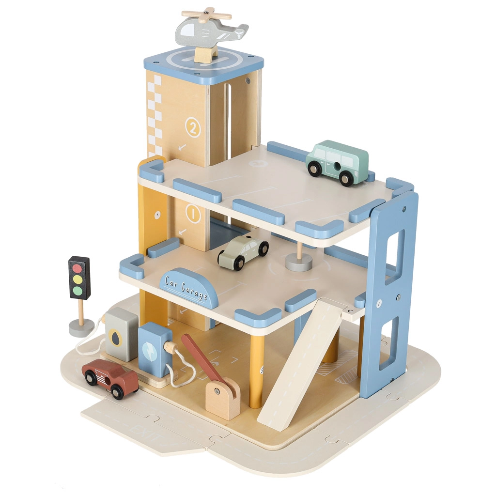 Découvrez des garages en bois de qualité avec ascenseur et station-service intégrée pour les petits passionnés de voitures. L’ensemble en matériaux naturels favorise le jeu créatif, le développement de la motricité et l’apprentissage des règles de circulation. Une construction robuste, un design à trois niveaux, un ascenseur fonctionnel, une pompe et de nombreux accessoires garantissent des heures de plaisir.