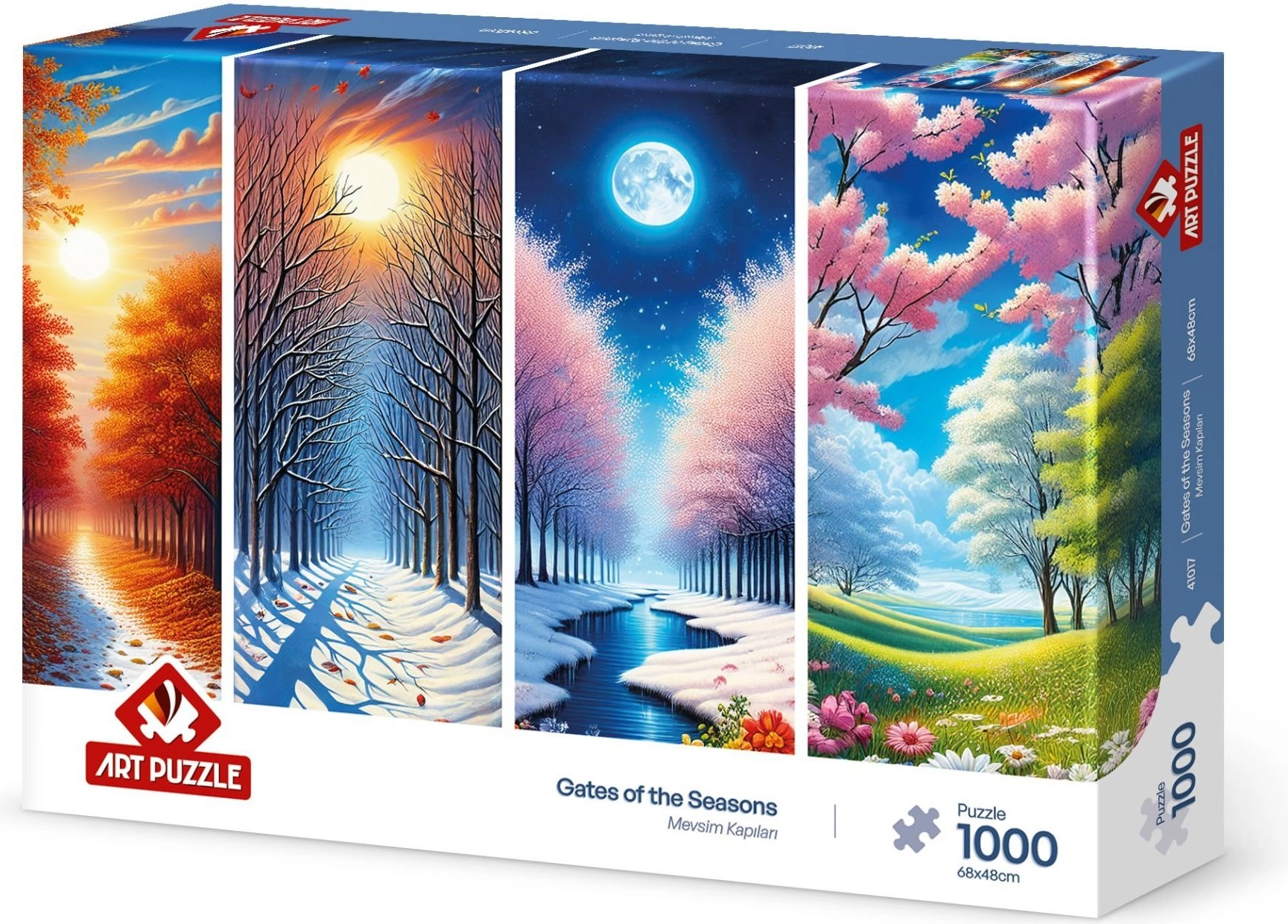 Savourez un assemblage apaisant avec un motif qui vous fait voyager à travers le printemps, l’été, l’automne et l’hiver. Le puzzle de 1000 pièces est un excellent choix pour les adultes et les enfants plus âgés qui recherchent un divertissement sur plusieurs soirées tout en développant leur concentration, logique et sens du détail.