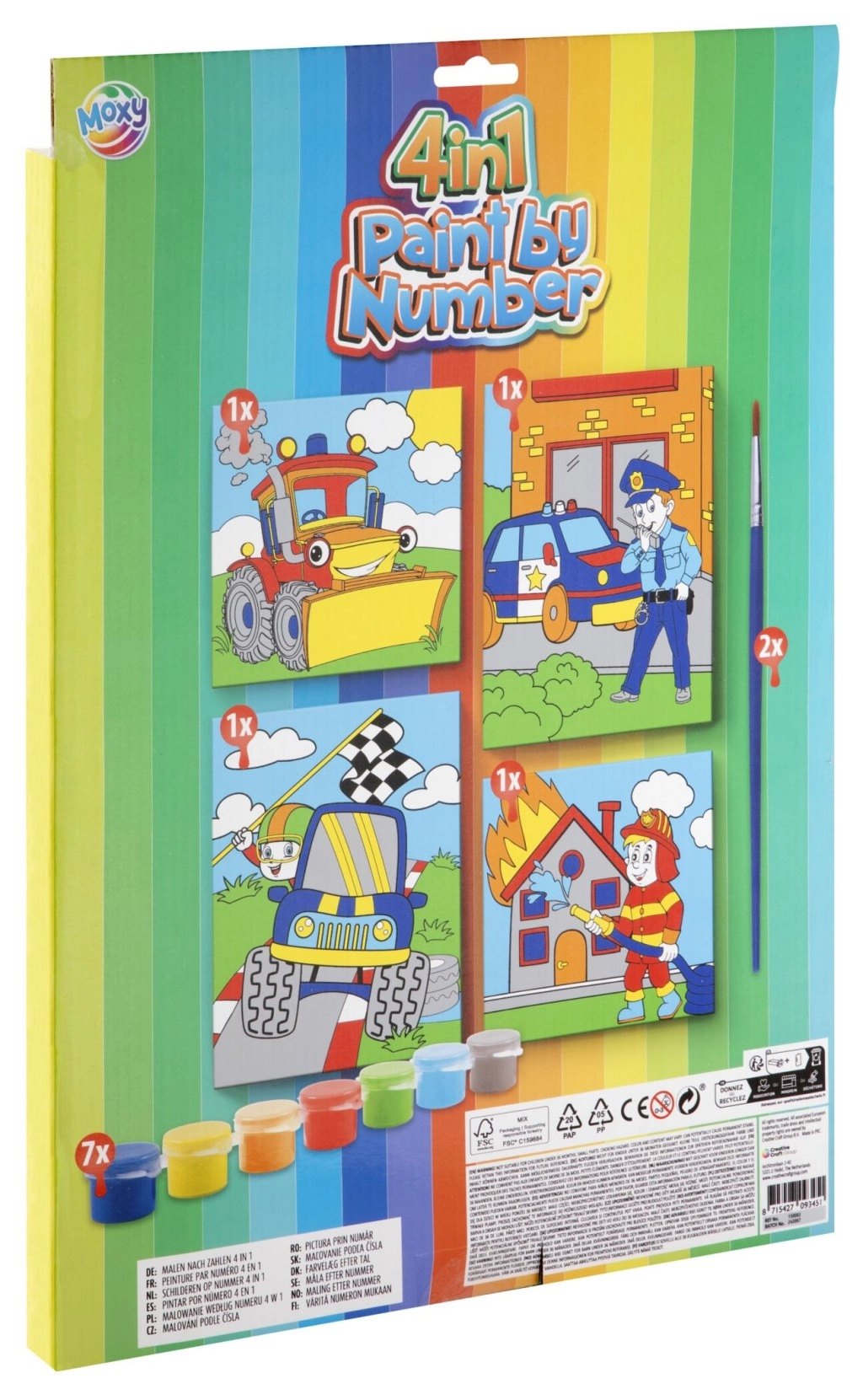 Découvrez le monde ludique de la création avec le kit créatif de peinture par numéros 4-en-1 pour garçons. Le set comprend 4 images préimprimées aux motifs pour garçons, des peintures acryliques, un pinceau et une notice. Chaque numéro correspond à une couleur, rendant la peinture simple et amusante tout en développant la patience, la concentration et la motricité fine.