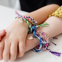 Perles colorées, cordons et pendentifs – tout ce qu’il vous faut pour réaliser des bracelets d’amitié originaux, au même endroit.