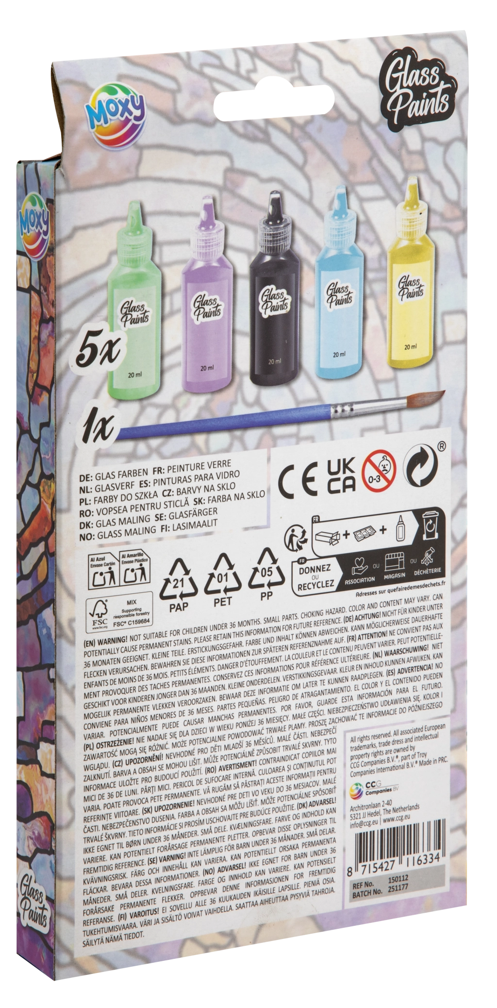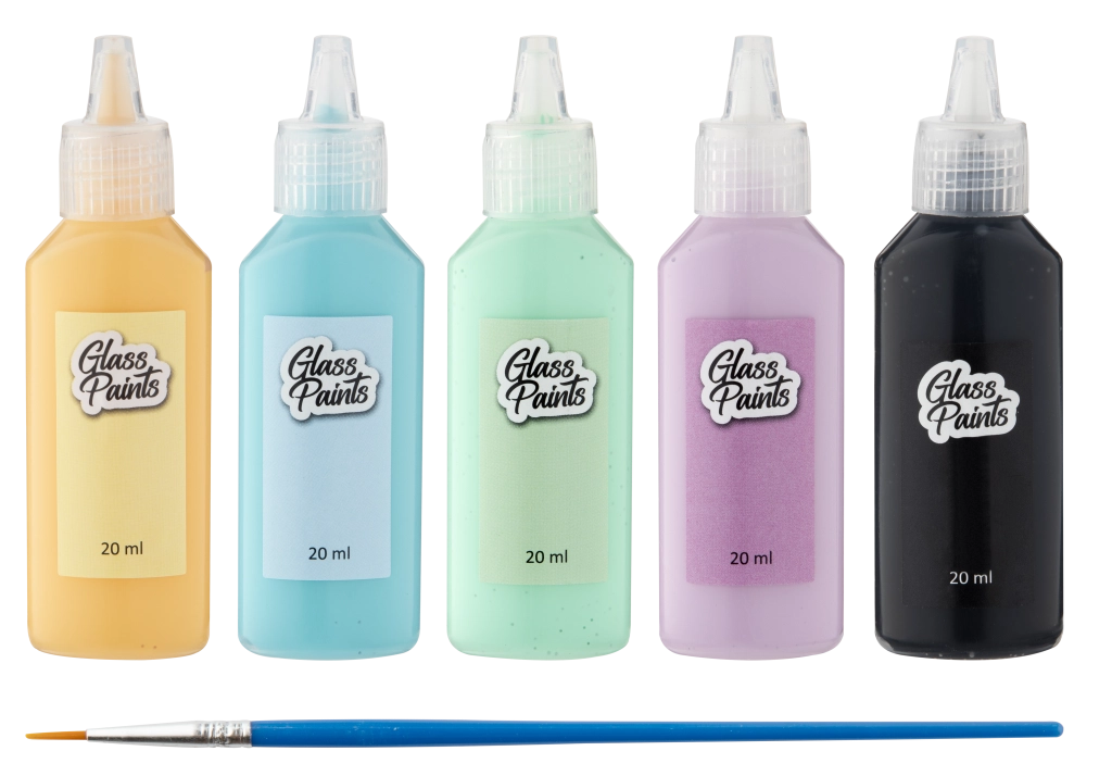 - 5× peinture pour verre (20 ml) et 1× pinceau