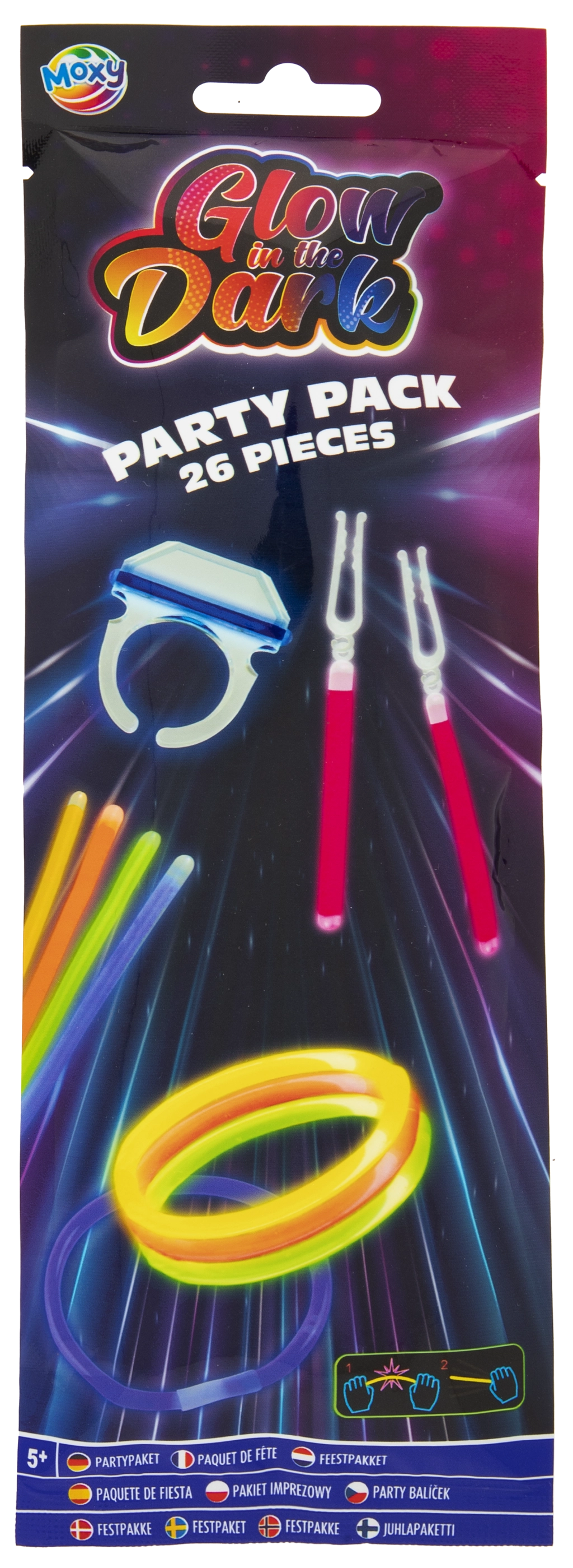 Le Glow Party Pack est le choix idéal pour créer instantanément une ambiance lumineuse spectaculaire. L’activation est simple – pliez, secouez et profitez d’un éclat aux couleurs variées. Grâce aux connecteurs fournis, vous pouvez facilement créer des bracelets, colliers ou des lunettes amusantes.