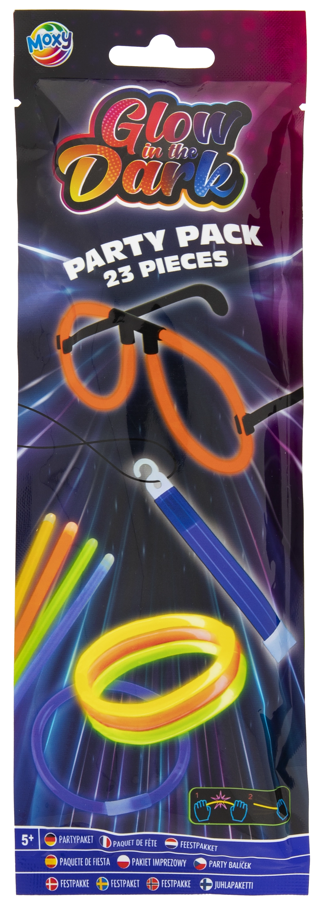 Illuminez chaque fête avec le Glow Party Pack – un kit universel pour anniversaires, soirées dansantes, festivals et divertissements en soirée. Il suffit de plier et de secouer pour que les bâtonnets et accessoires s’illuminent de couleurs vives. Le coffret comprend des bâtonnets, des bracelets, lunettes, colliers et des connecteurs pour un assemblage facile. Longue durée de luminosité pour une ambiance au top à chaque party. Disponible en 3 variantes.