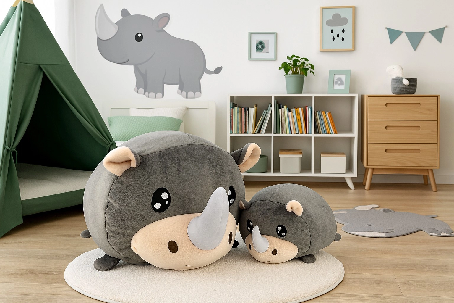 Découvrez le set magique de rhinocéros en peluche MAGIC BABY – une maman tendre et son adorable bébé. Tous deux ont une forme arrondie pour des étreintes confortables, des détails brodés pour les yeux et le sourire, et une surface extrêmement douce que les enfants adorent immédiatement. Grâce à une conception sûre sans petites pièces dures, ils conviennent même aux nouveau-nés.