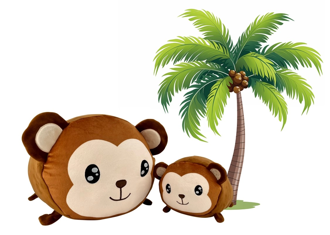 Ce set de singes en peluche offre un confort maximal et des câlins à l’infini. Le petit singe (20 cm) est idéal comme premier doudou pour les tout-petits, tandis que le grand singe (40 cm) fait un excellent coussin moelleux pour les voyages, en voiture ou comme décoration stylée de la chambre d’enfant.