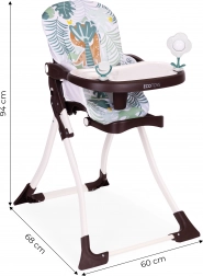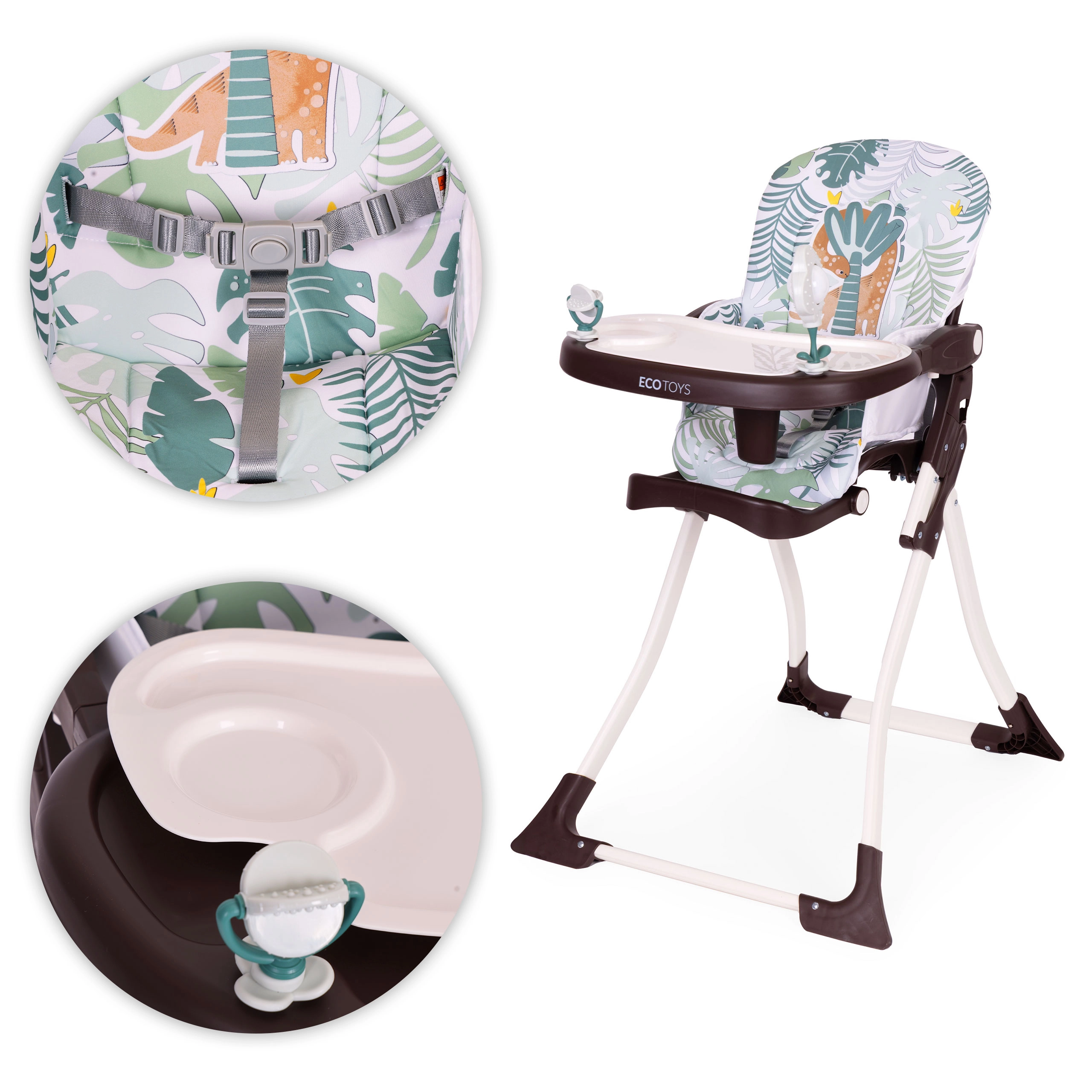 La chaise haute ECOTOYS facilite les repas partagés et maintient votre enfant à l’aise et en sécurité. Le large plateau offre suffisamment d’espace pour l’assiette, le gobelet et le jeu – il comprend une toupie et un hochet qui divertissent et stimulent les sens. La structure pliante économise de la place dans les petits intérieurs et simplifie le transport.
