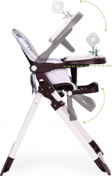 Large plateau réglable à deux couches avec insert supérieur amovible, facile à nettoyer. Les jouets intégrés divertissent l’enfant en attendant le repas et favorisent le développement de la motricité.