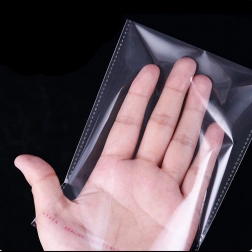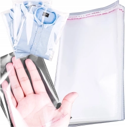 Sachets cellophane OPP pratiques et résistants au format 50 × 55 cm avec rabat adhésif, idéaux pour emballer des cadeaux, des textiles, des bijoux et des aliments. Ils offrent une transparence élevée pour une présentation attrayante, un contact alimentaire sûr et une fermeture autocollante fiable pour un emballage rapide et propre.