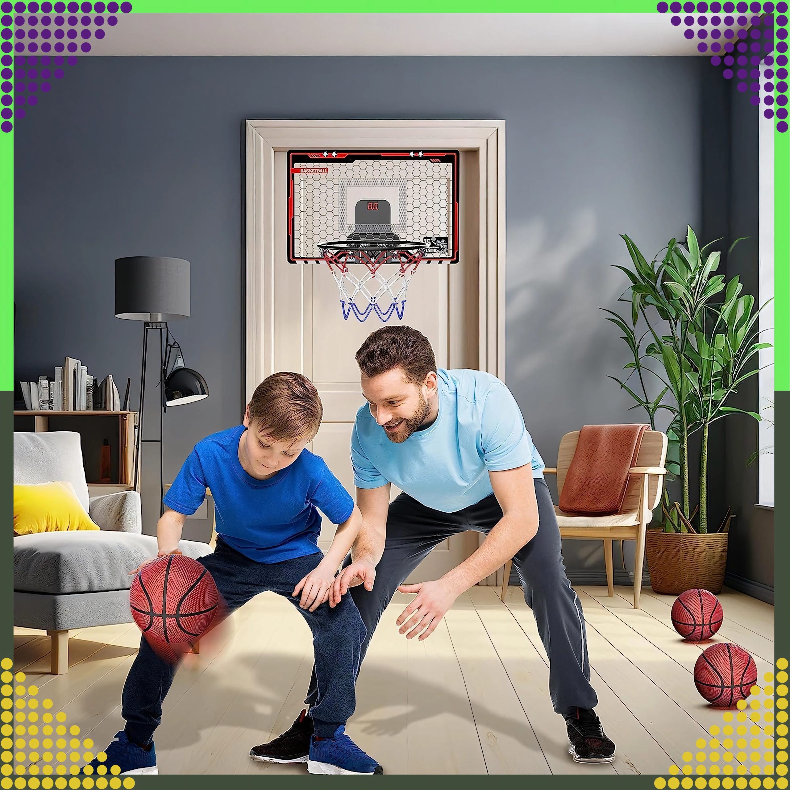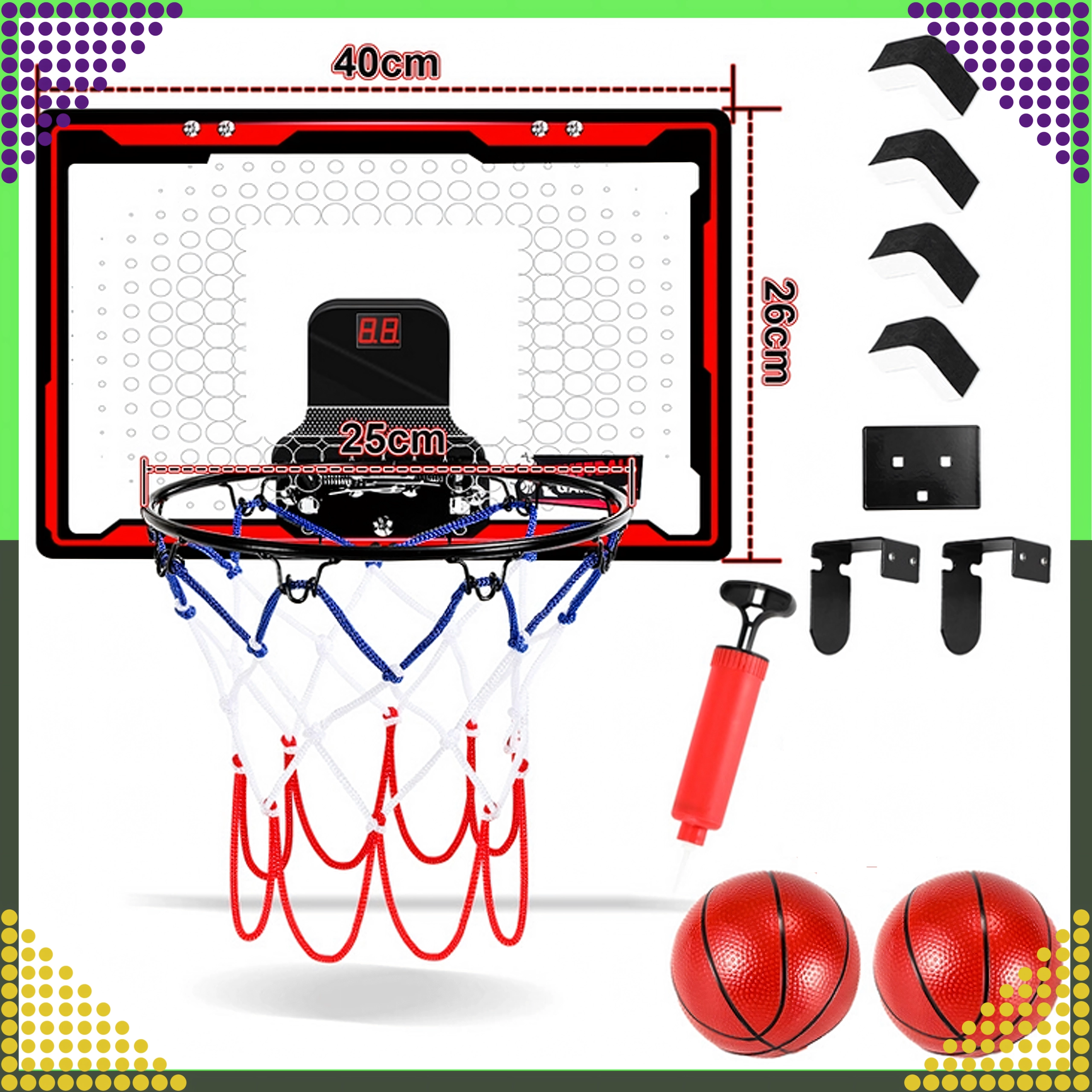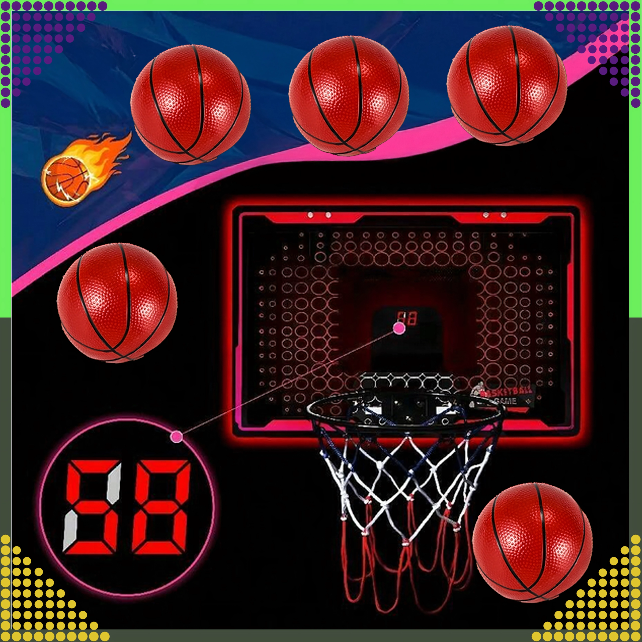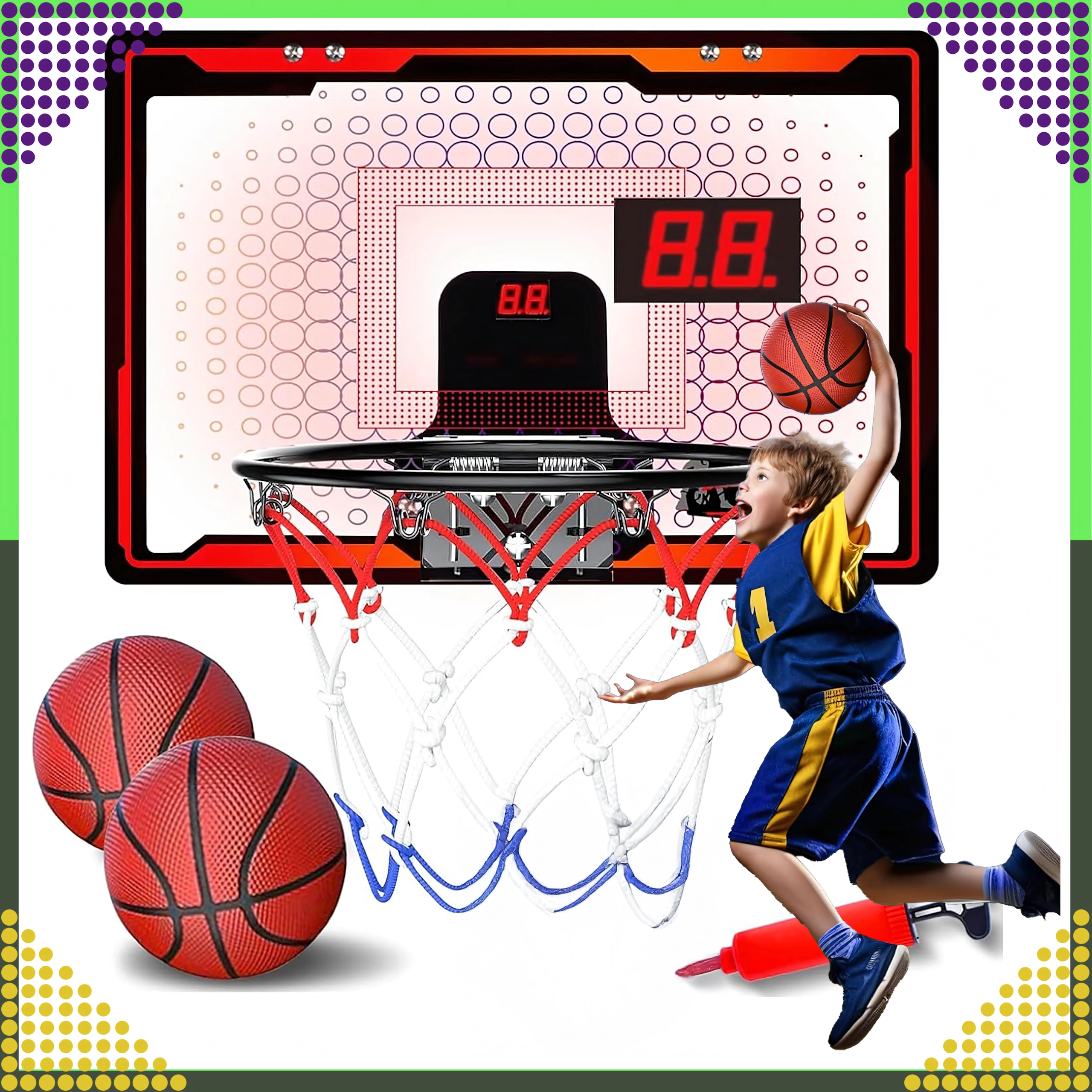 Le mini panier de basket interactif 3-en-1 est un excellent choix pour jouer à la maison. L’écran LCD intégré pour le comptage des points motive une saine compétition, les effets sonores dynamisent chaque panier et la construction robuste assure une longue durée de vie même en cas d’utilisation fréquente.