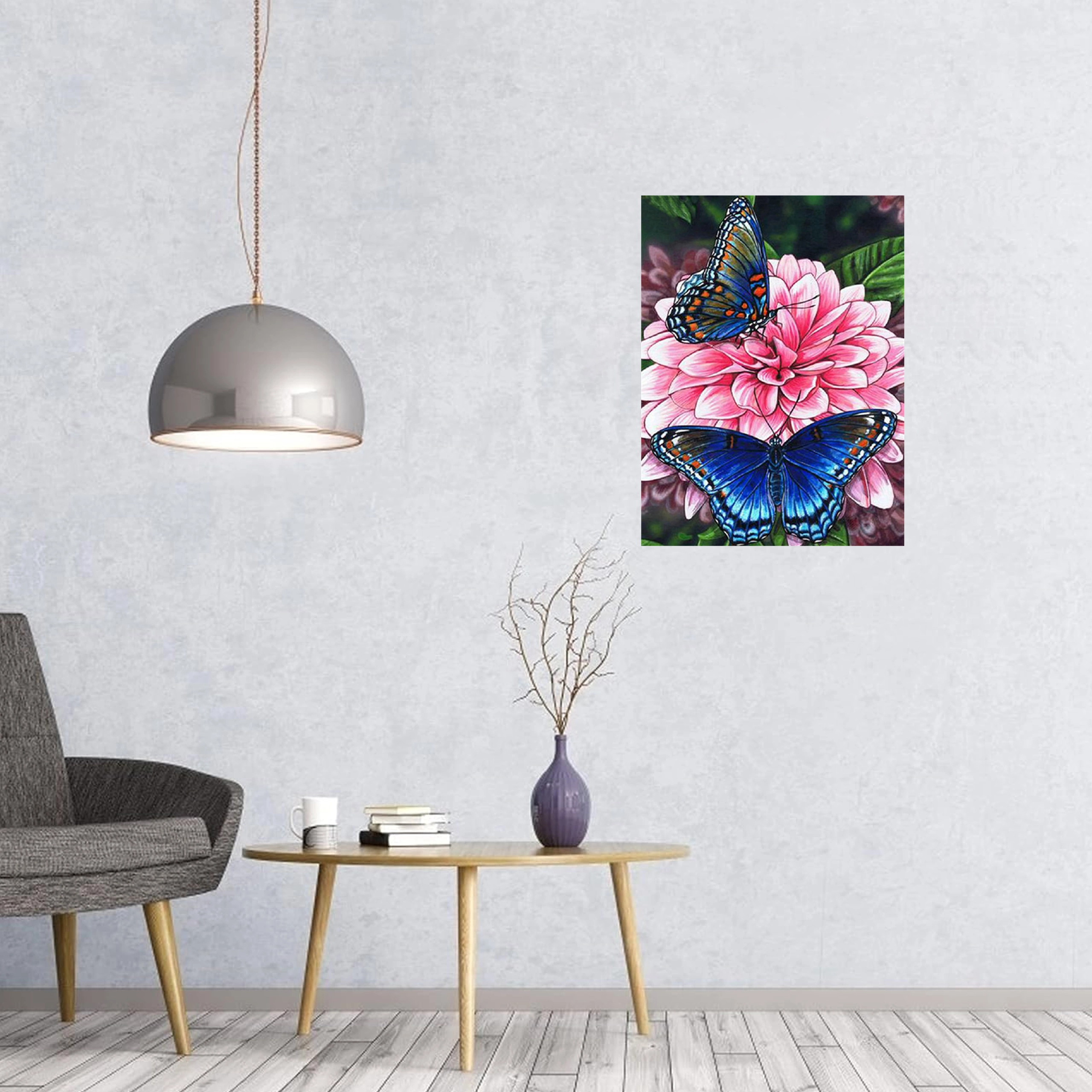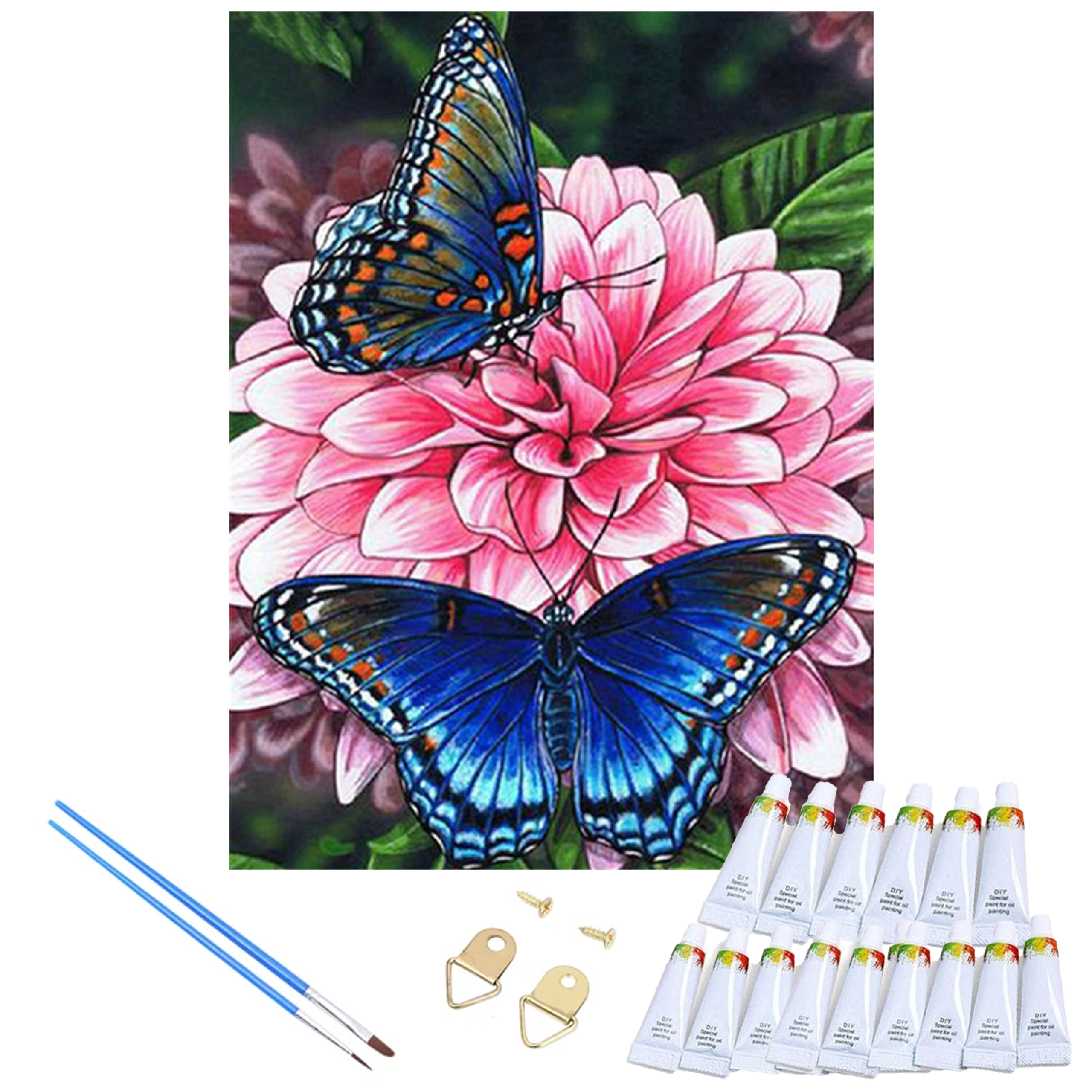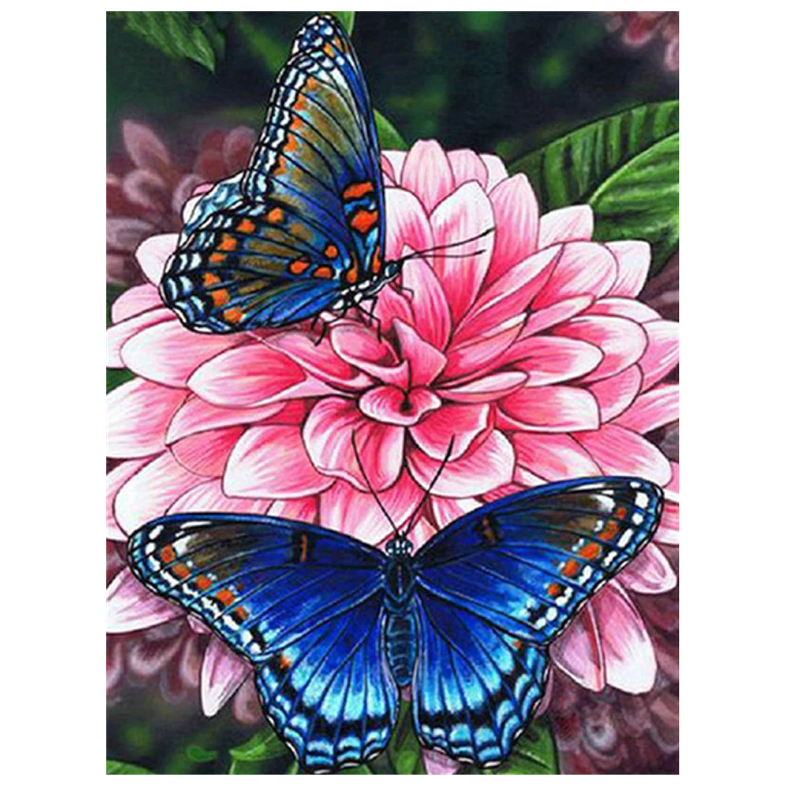 Le motif de deux papillons bleus sur une fleur est imprimé sur une toile tendue sur un châssis en bois. Après la peinture, il suffit d’accrocher le tableau pour embellir votre intérieur.