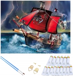 Ce set complet de peinture par numéros est idéal pour les débutants comme pour les confirmés. La toile préimprimée avec des numéros clairement indiqués vous guide intuitivement tout au long du processus – il suffit d’associer les couleurs aux numéros et, étape par étape, apparaît une image détaillée d’une mer agitée et d’un majestueux navire pirate.