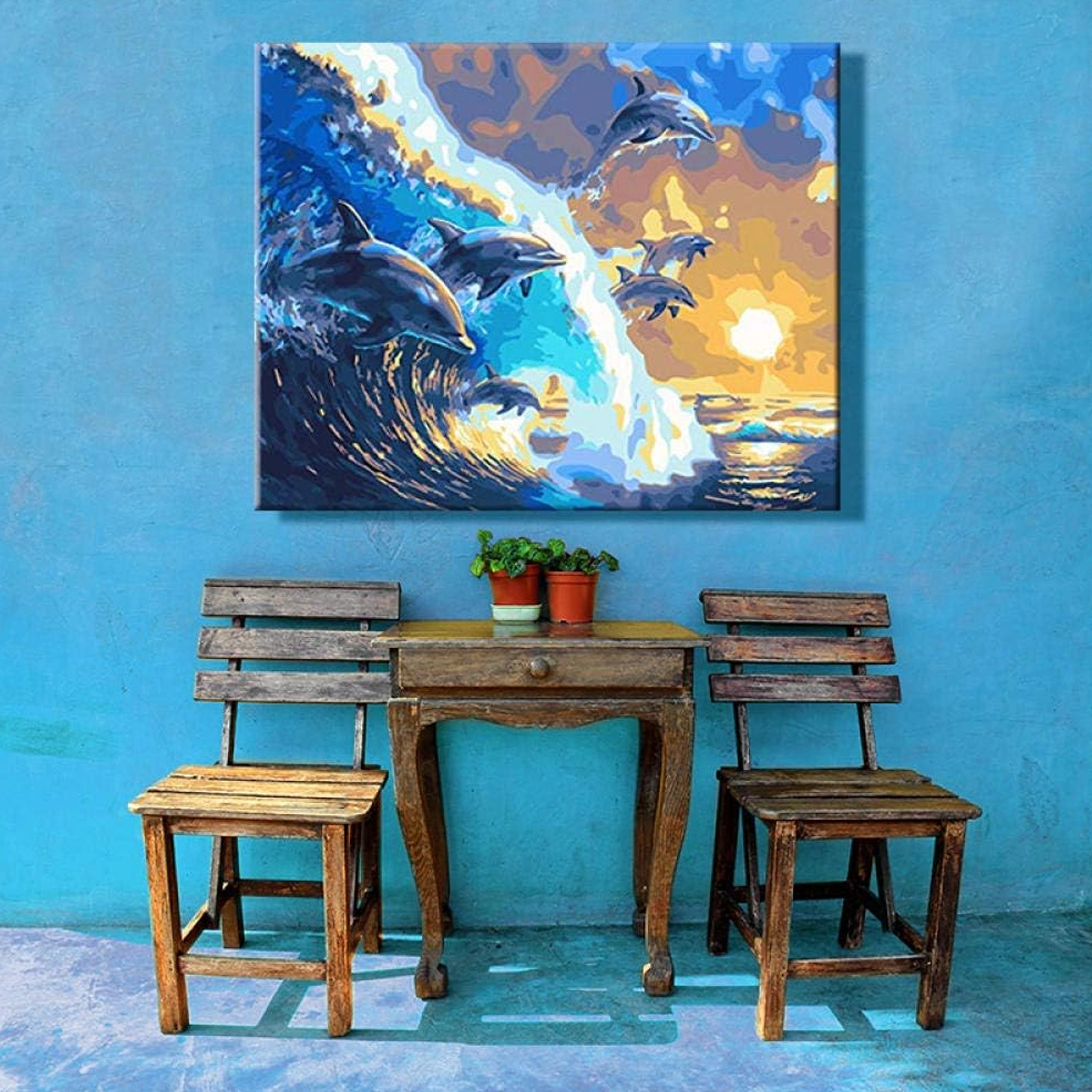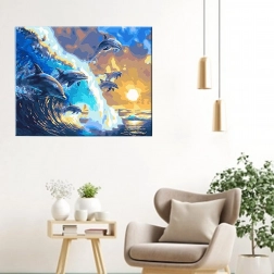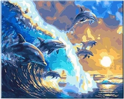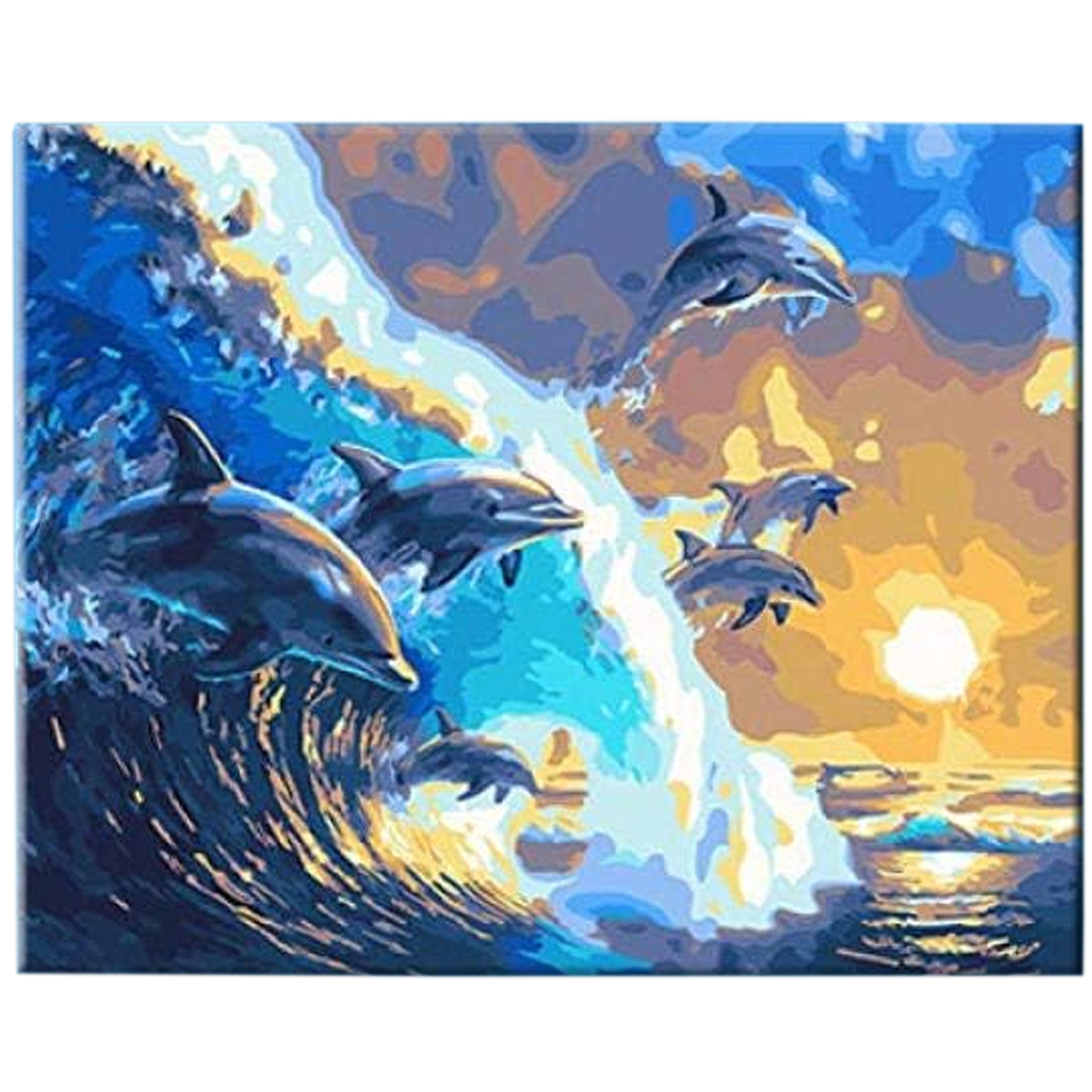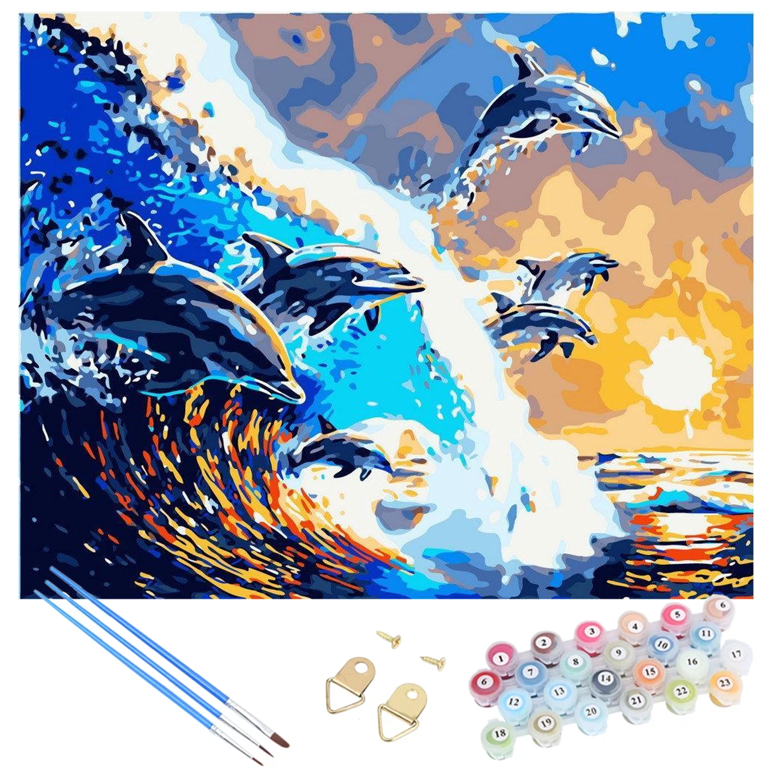 Ce kit créatif vous permet de peindre votre propre tableau sans expérience préalable. La toile est préimprimée avec des secteurs numérotés et l’emballage contient les peintures acryliques correspondantes et des pinceaux. Chaque numéro correspond à une couleur précise – vous n’avez qu’à remplir et regarder une scène marine vivante avec des dauphins prendre forme.