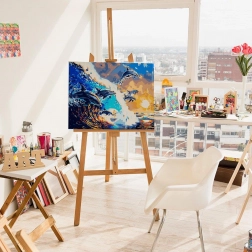 Grâce à la toile tendue sur châssis, vous pouvez peindre dès l’ouverture et accrocher le tableau au mur une fois terminé. Le motif combine des tons bleus profonds et des orangés chaleureux qui illumineront votre intérieur et créeront une atmosphère agréable.