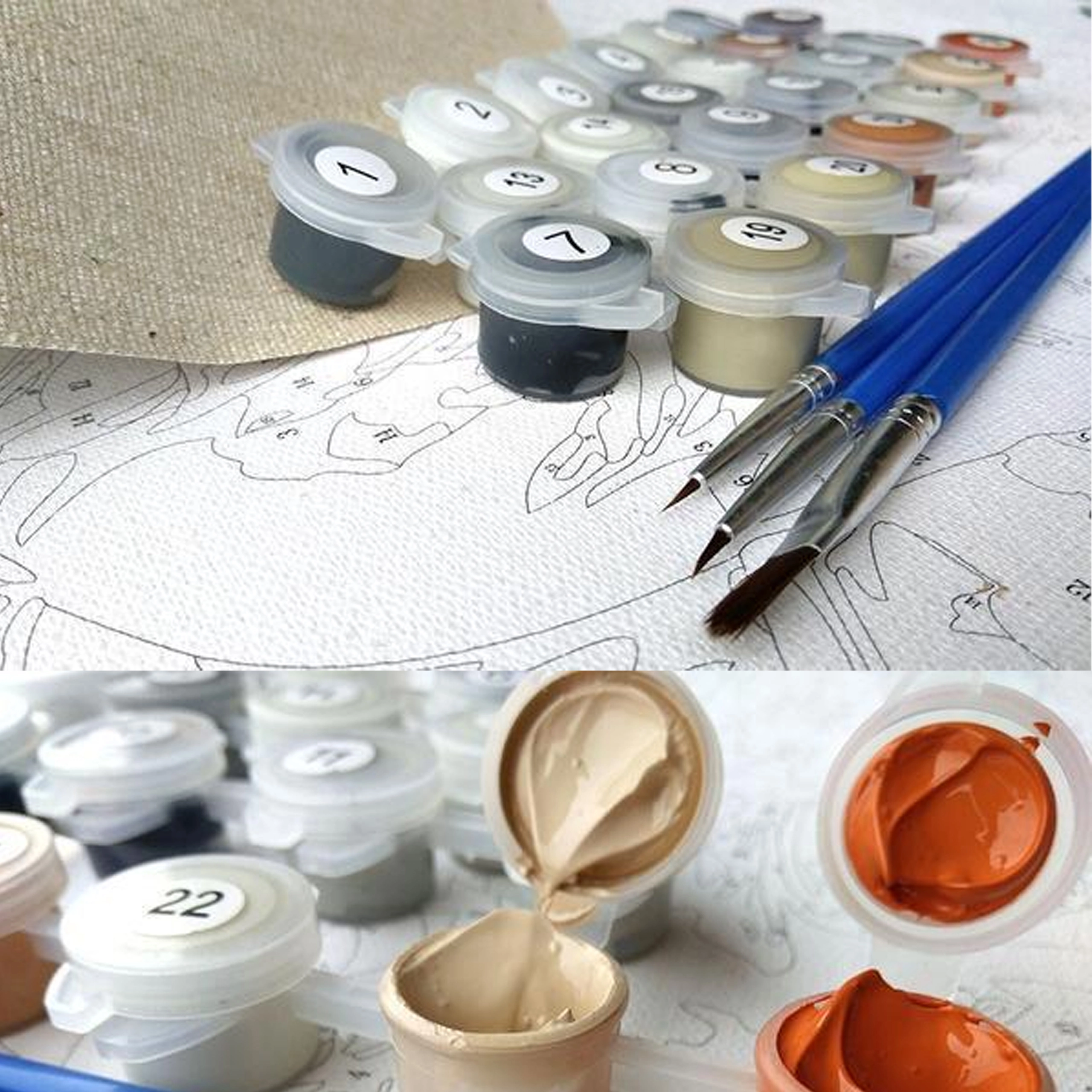 - Toile sur châssis, set de peintures acryliques en godets, pinceaux, modèle de référence