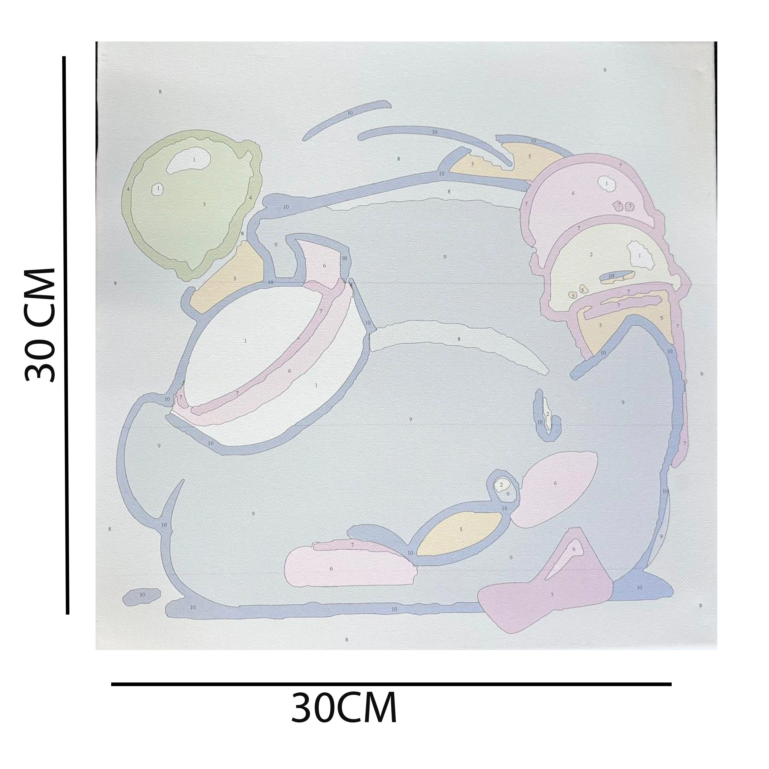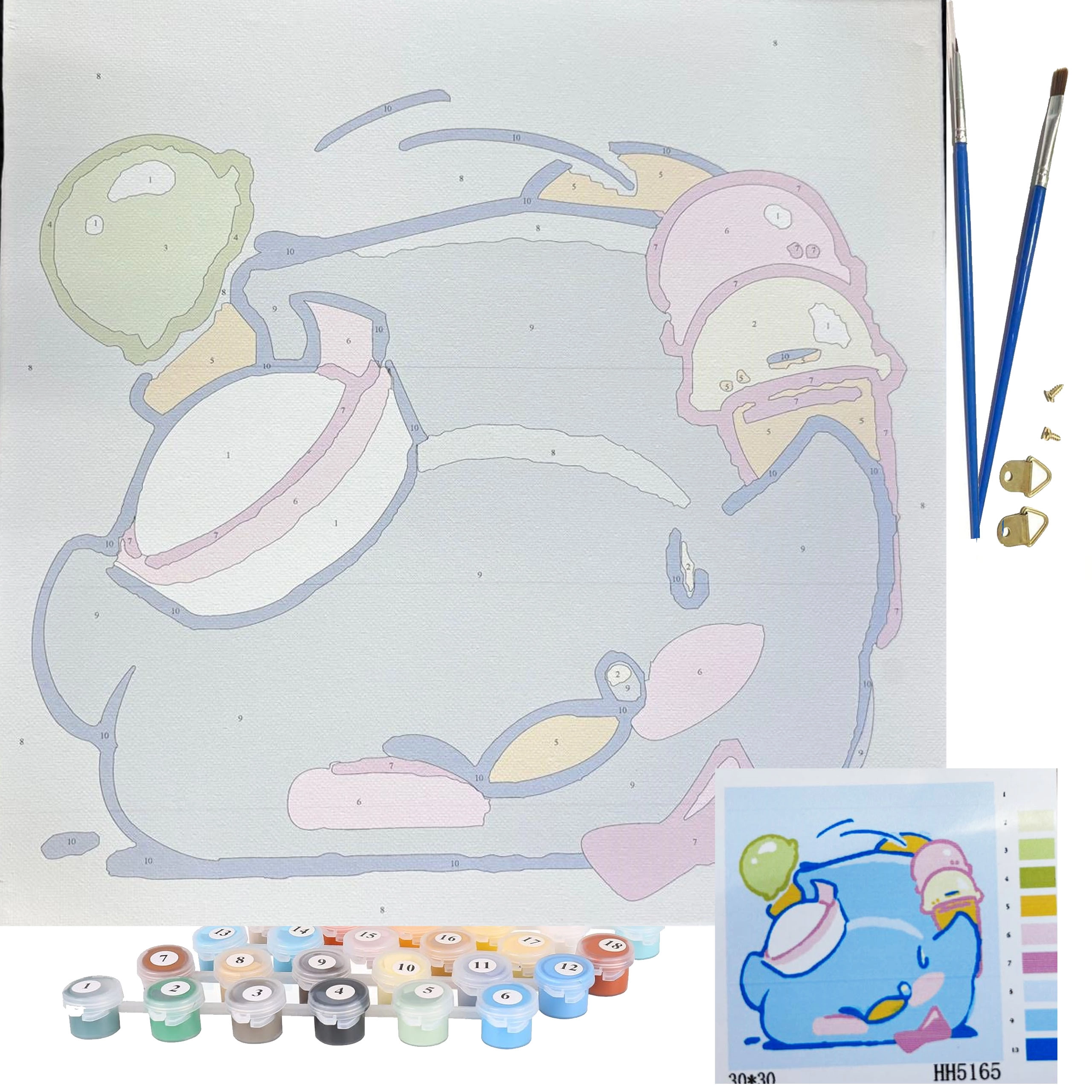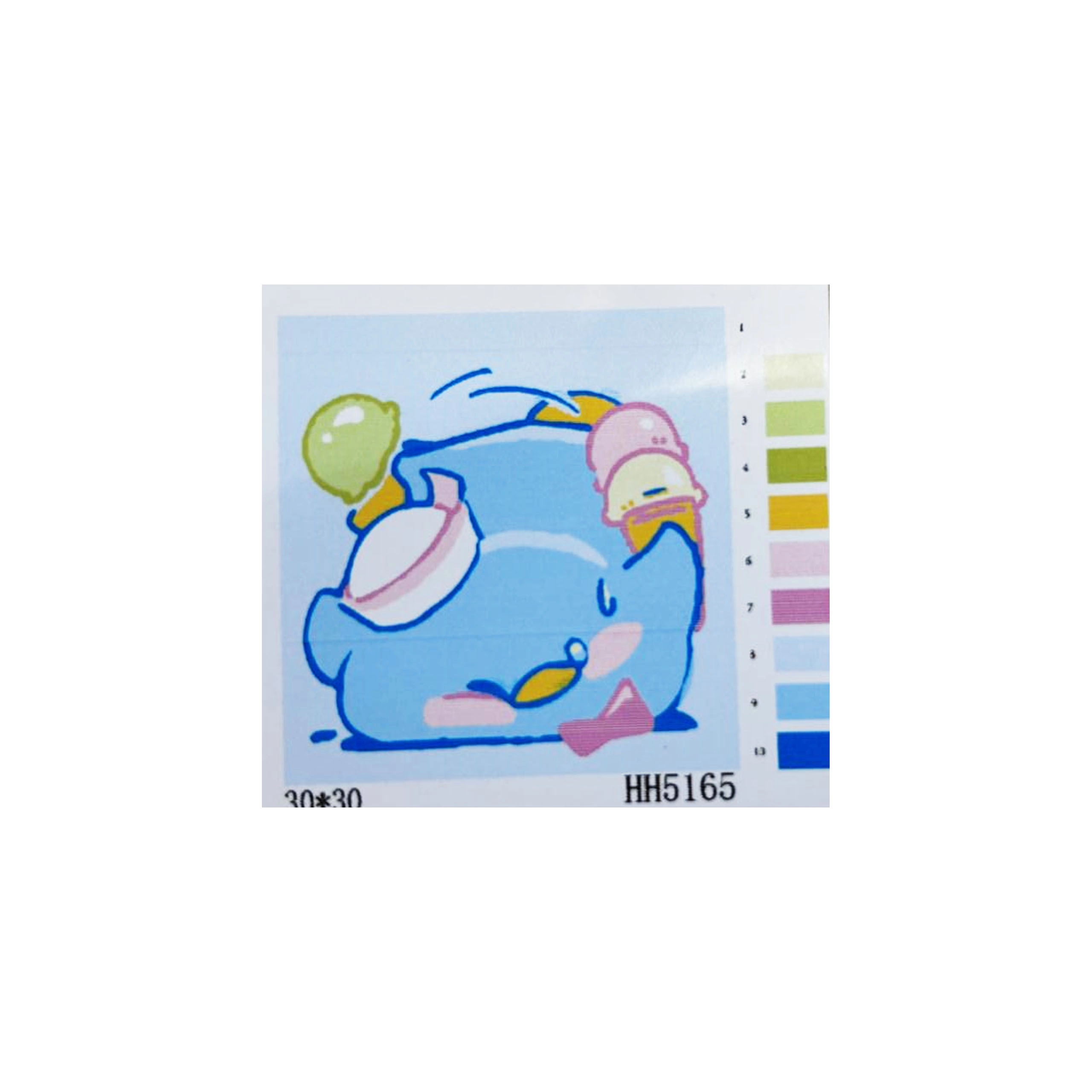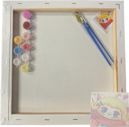 Le kit est conçu pour un niveau de difficulté enfant et contient tout le nécessaire : toile préimprimée 30 × 30 cm, ensemble de peintures acryliques et pinceaux. Le motif et la palette sont envoyés aléatoirement avec des thèmes enfantins pour rendre la peinture amusante et accessible.