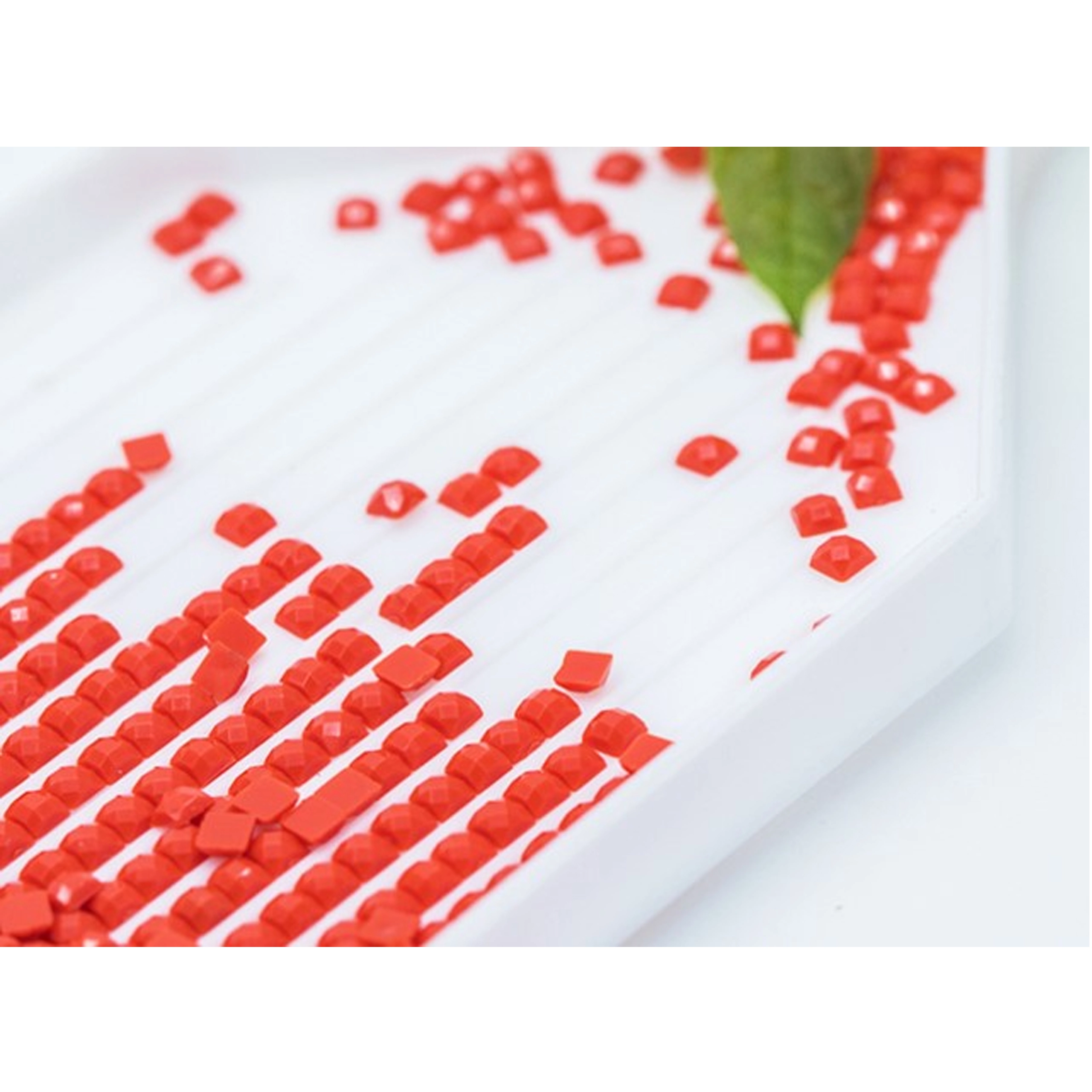 Le plateau rainuré aligne les strass en rangées pour une prise plus rapide et un travail fluide, sans désordre.