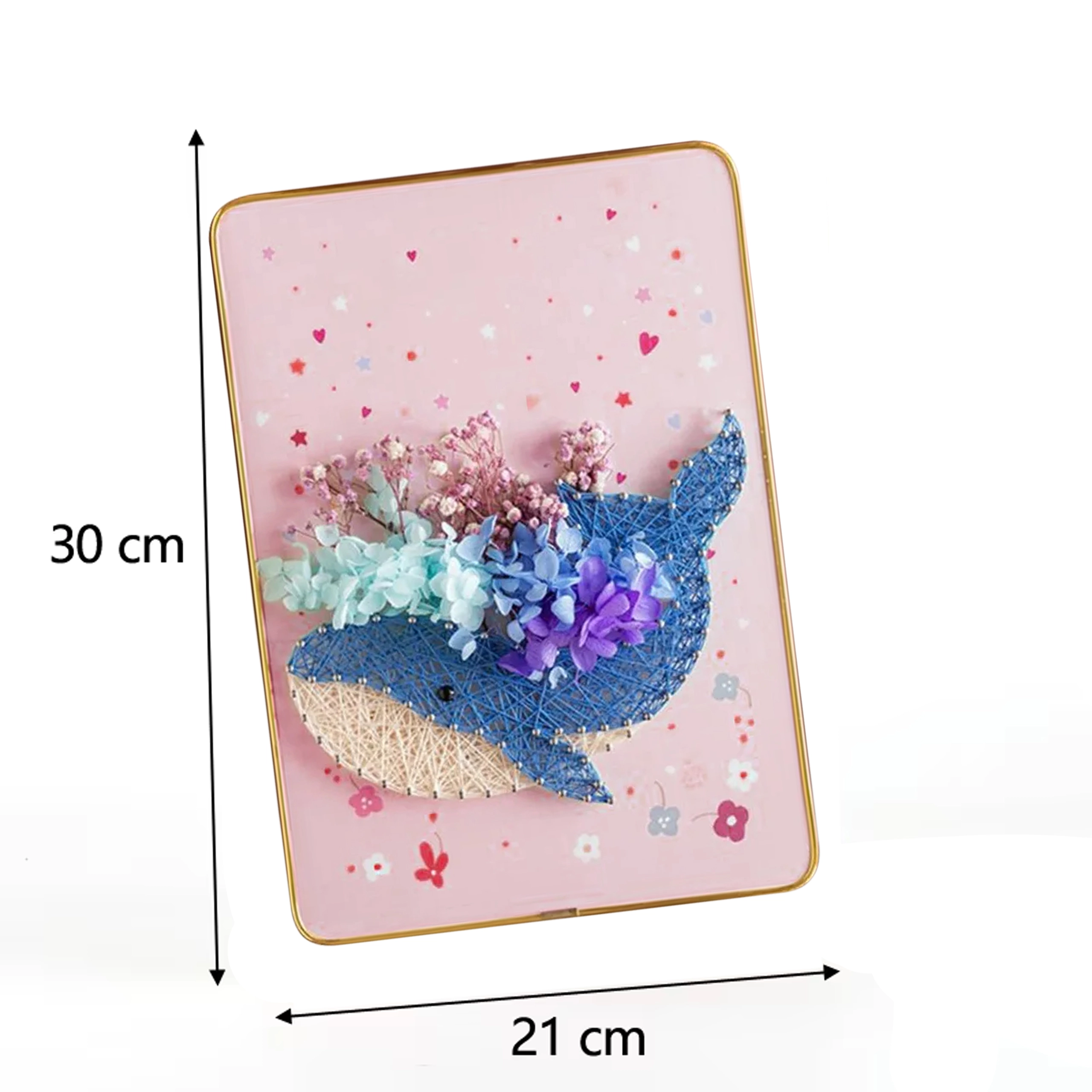 Découvrez le « string art » ludique pour enfants et adultes. Ce kit créatif de string art contient tout le nécessaire pour créer une image décorative dans un cadre 21 × 30 cm avec un motif de dauphin. Grâce aux lumières LED intégrées, votre œuvre gagnera une atmosphère féerique. Un excellent cadeau qui développe la créativité, l’imagination et la motricité fine.