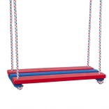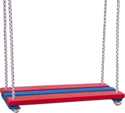 Belle balançoire en bois aux couleurs vives pour une utilisation intérieure et extérieure. Offre un balancement stable et sûr, une capacité de 80 kg et une assise spacieuse de 46 × 20 cm. Idéale pour les enfants dès 3 ans et pour se détendre au jardin.