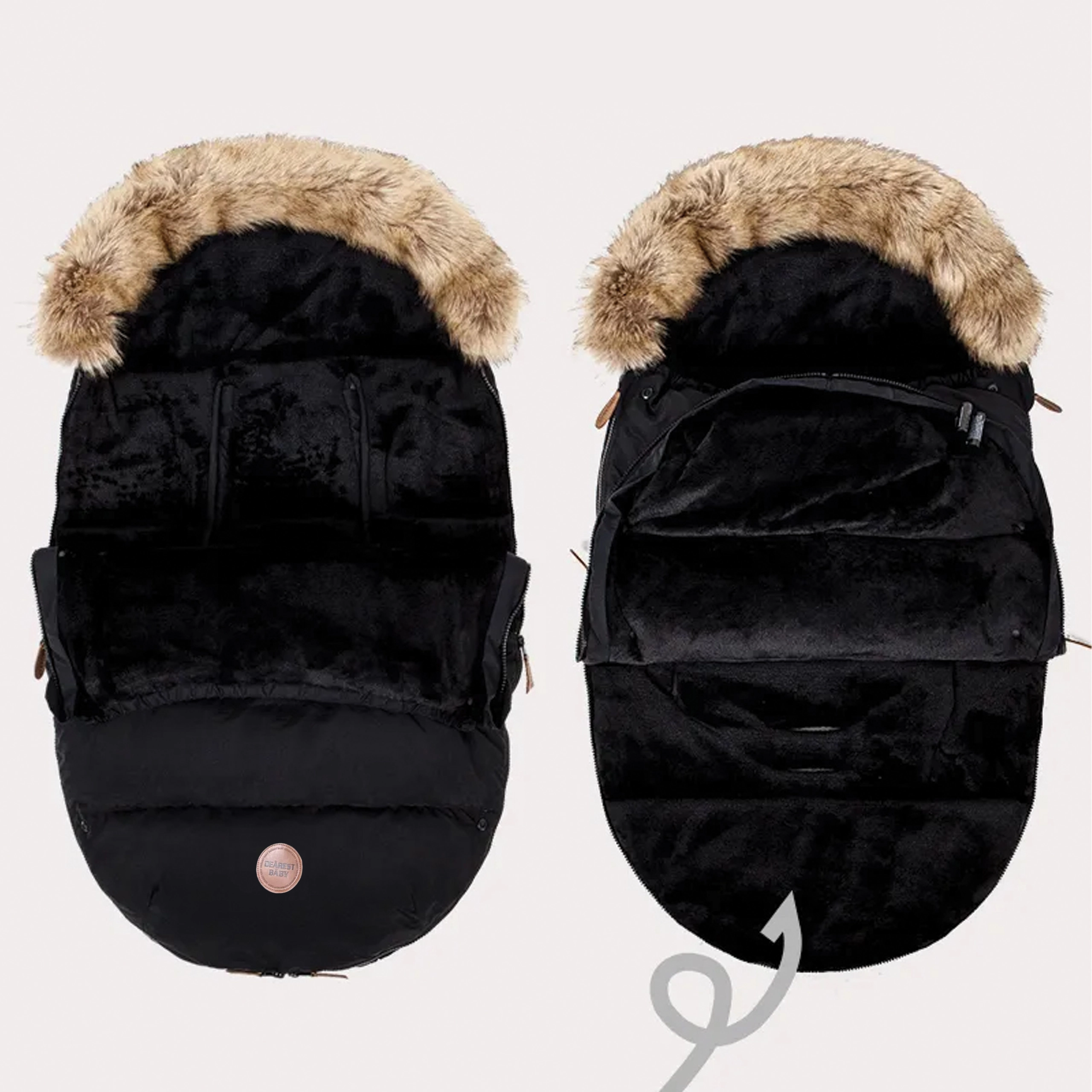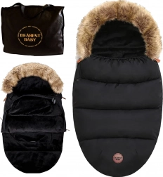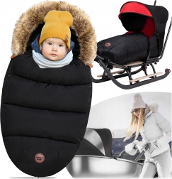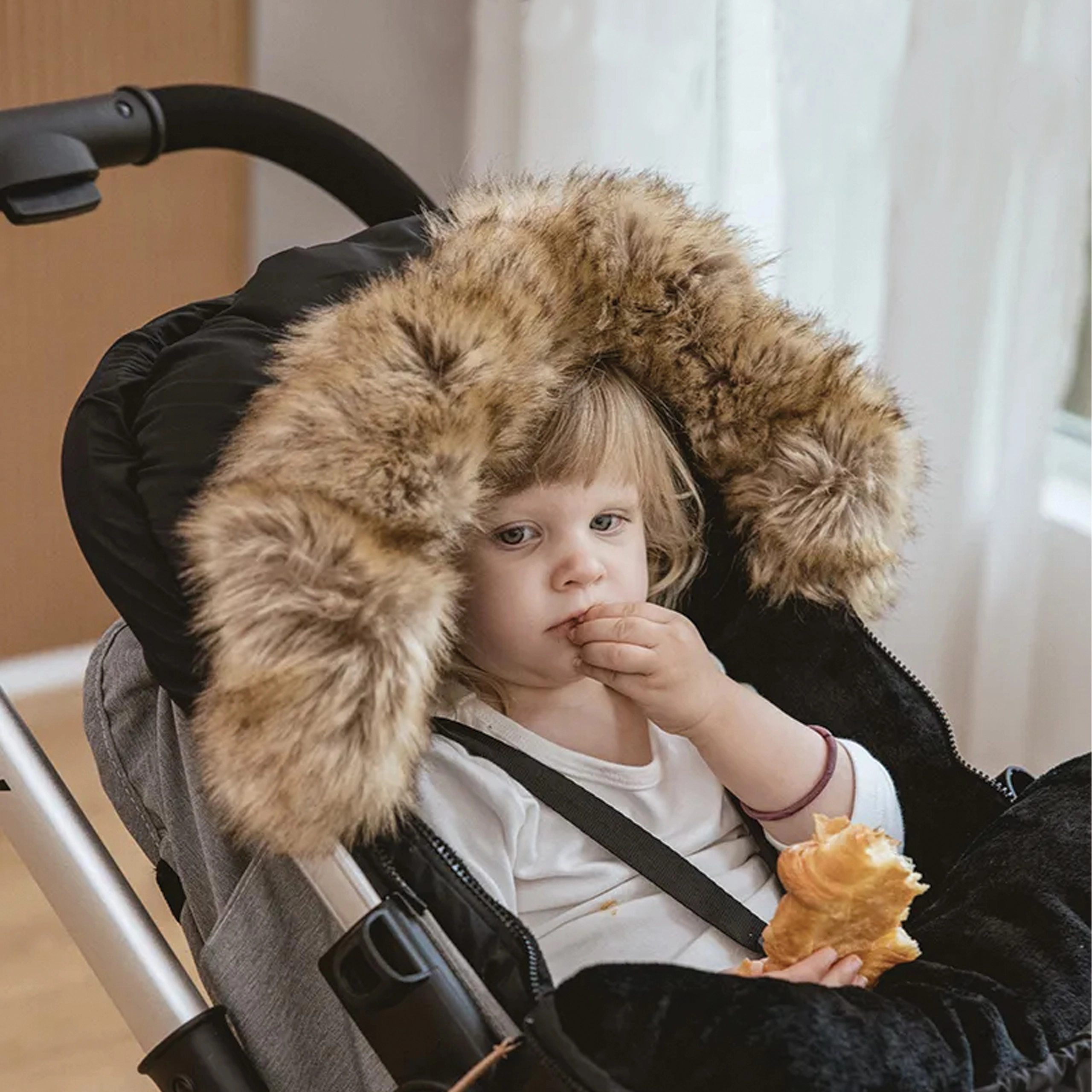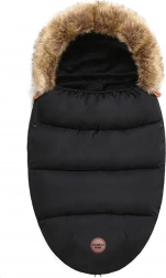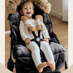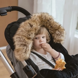 Garnissage épais, doublure douce et capuche bordée de fourrure pour garder l’enfant bien au chaud lors des promenades hivernales. Idéale pour dormir comme pour s’asseoir.