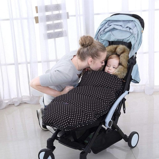 Les fentes verticales pour harnais et les zips à double sens assurent une fixation et une utilisation faciles sur poussettes cannes ou landaus, porte-bébés et luges.