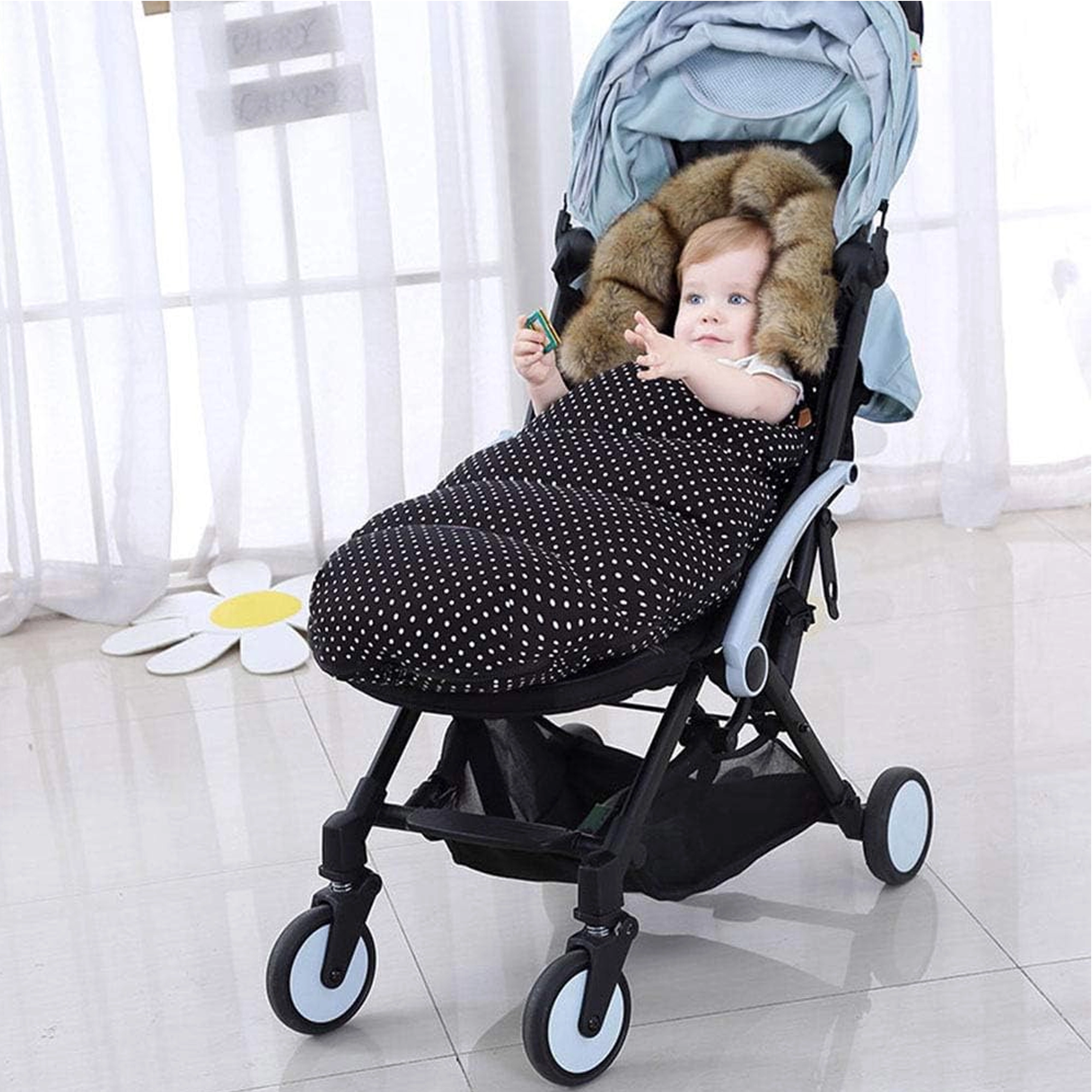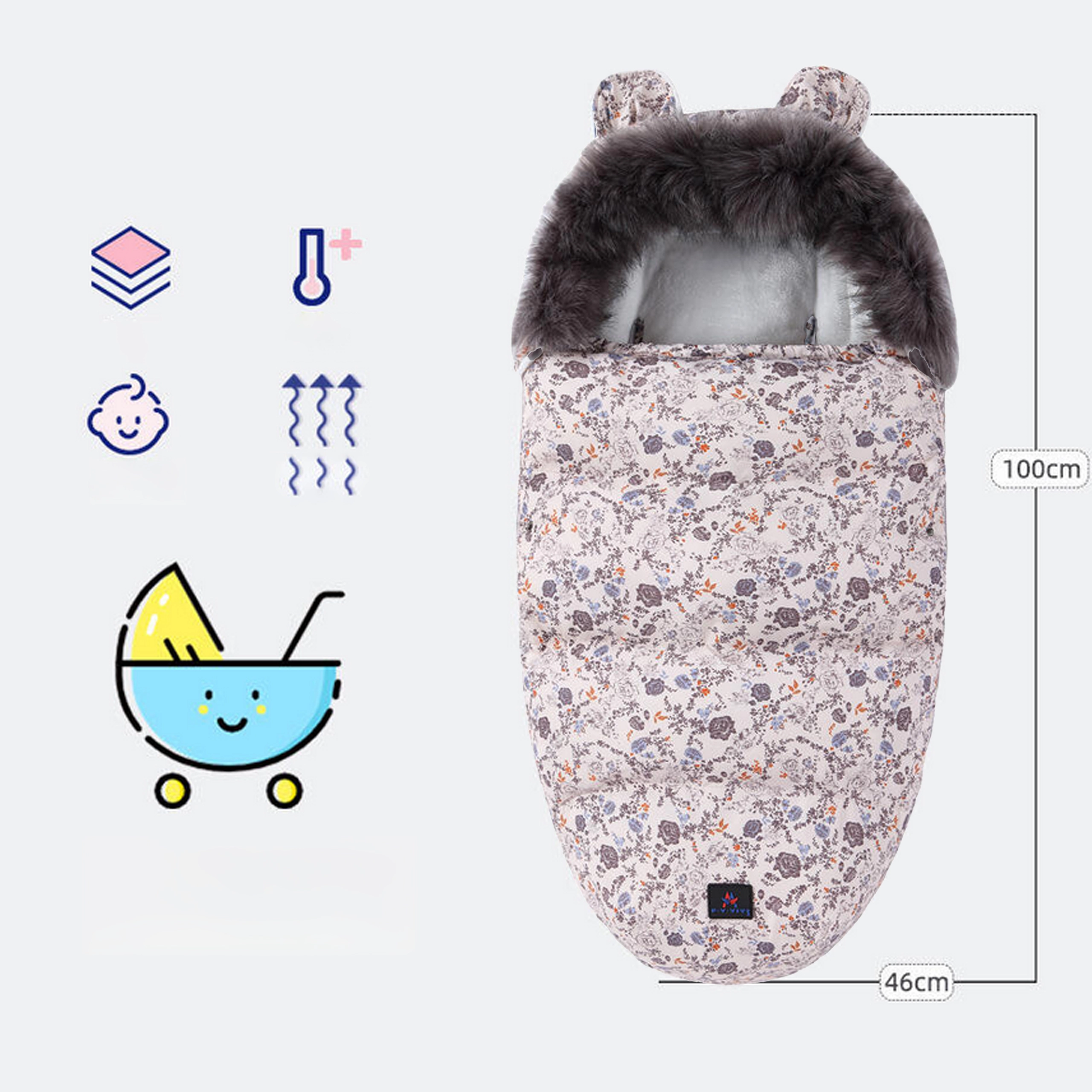 La chancelière FYYIYI au design floral rose, à la fois stylée et fonctionnelle, est idéale pour les journées froides. Le tissu extérieur résistant protège de la neige et du vent, tandis que le rembourrage douillet et le microfleece intérieur garantissent le confort à chaque sortie. La capuche bordée de fausse fourrure protège la tête de l’enfant des courants d’air.