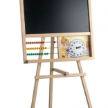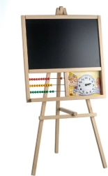Ce tableau en bois sur pied est idéal pour la chambre d'enfant d'un jeune élève. Il est équipé d'un abaque et d'une horloge amusante avec aiguilles, offrant plusieurs options pour un apprentissage ludique.