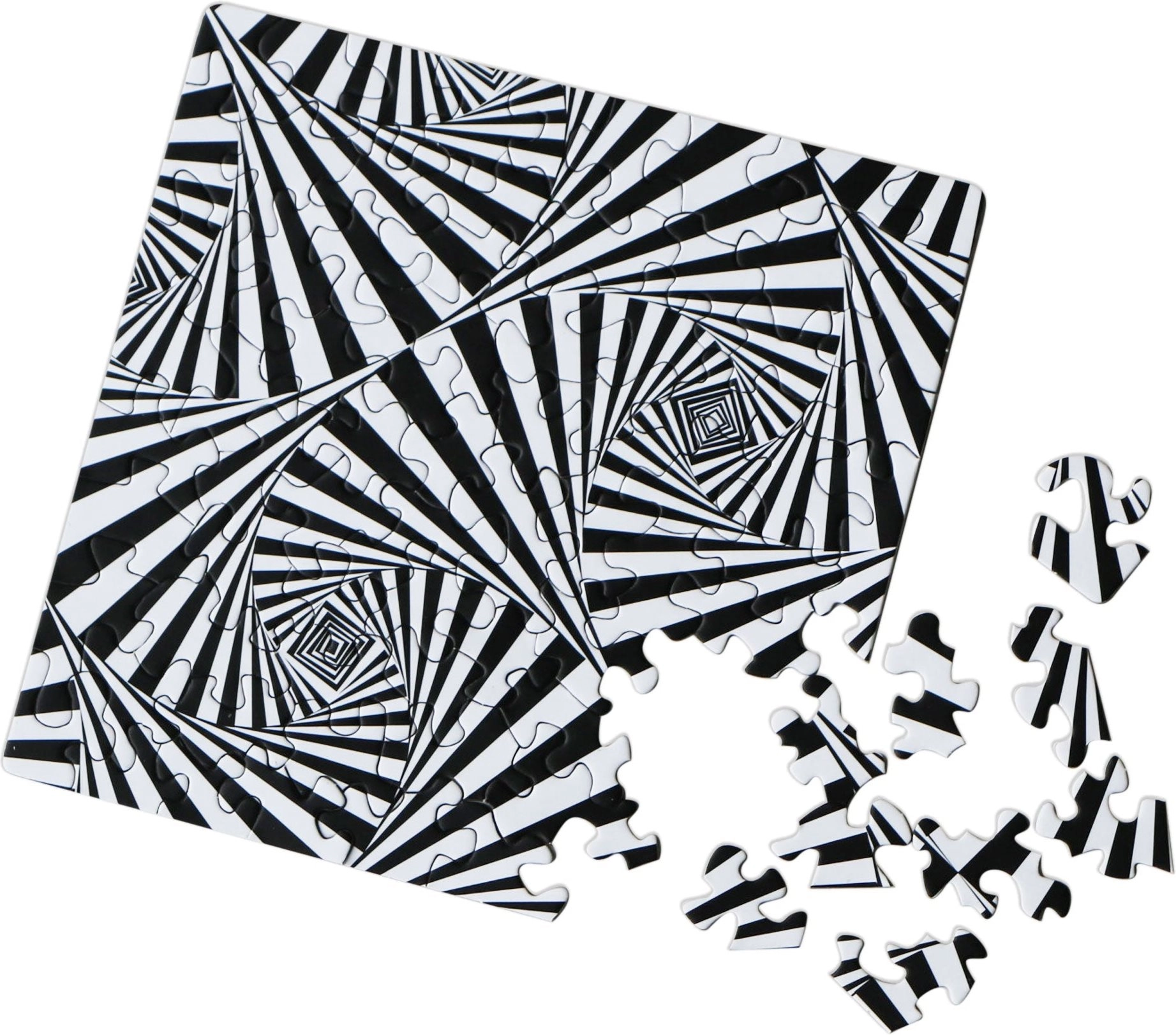 Le puzzle carré Q Shimmer : Illusion ravira tous ceux qui recherchent un assemblage compact et stylé. Grâce aux formes atypiques des pièces, il offre un défi agréable ainsi qu’un effet visuel original une fois complété.